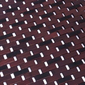 Mata wykonana z wysokiej jakości naturalnego bambusa. Zabezpieczona warstwą lakieru w kolorze ciemnego brązu. Praktyczna i funkcjonalna, łatwa w czyszczeniu. Posiada piankowe podkładki.