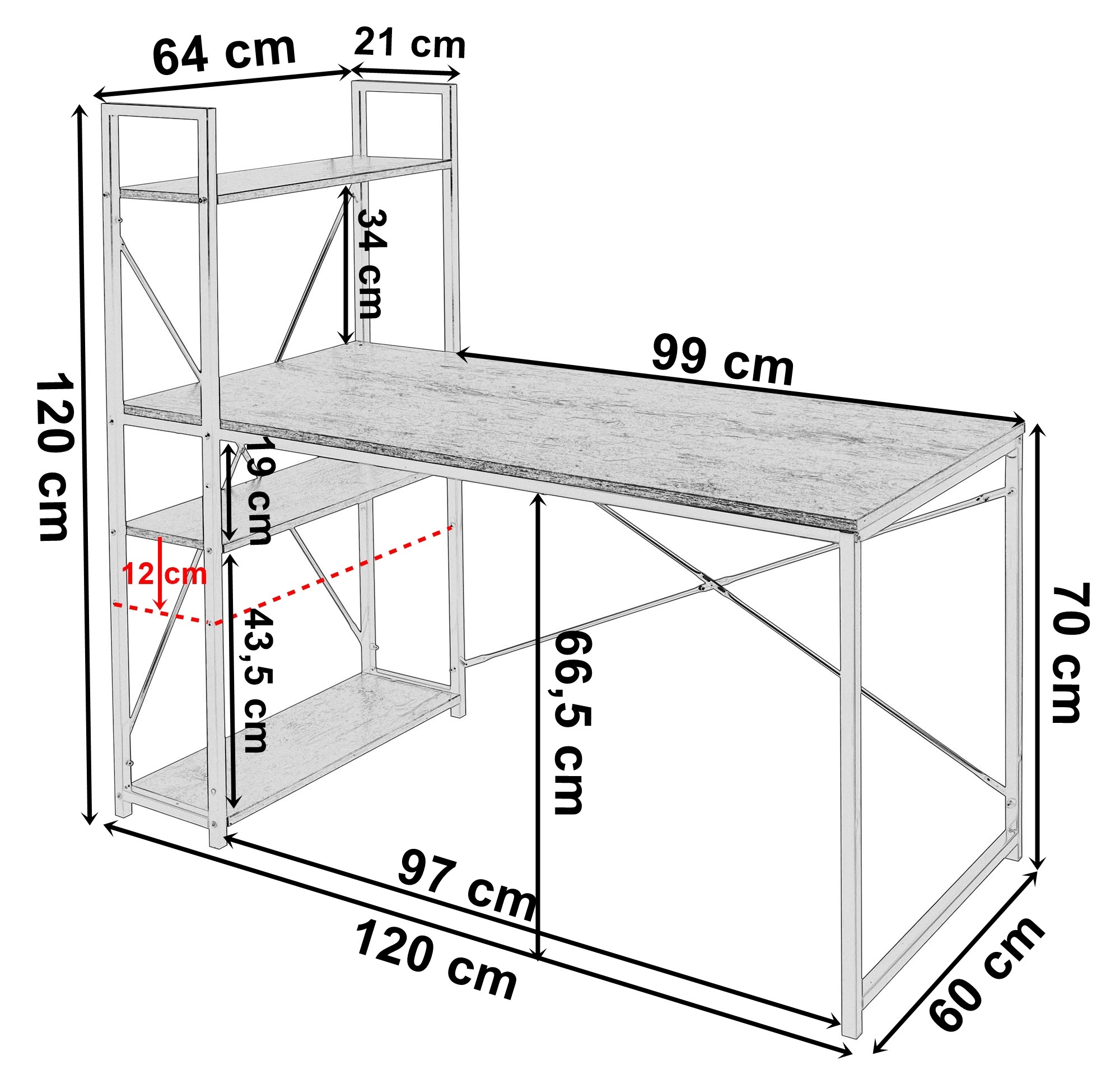 Wysoka jakość i staranne wykonanie: Konstrukcja wykonana z mocnego metalu, półki z wytrzymałych, drewnianych płyt laminowanych. Wszystko to gwarantuje jakość, stabilność, trwałość i nośność. Wygodna przestrzeń- regał z półkami na potrzebne książki czy stylowe ozdoby można zamontować po obu stronach biurka, w zależności od potrzeb. Praktyczne i piękne: nadstawka z półkami zapewnia odpowiednie miejsce dopracy czy rozrywki przy komputerze. Wzornictwo industrialne loft sprawia, że biurko Trosa jest stylowe i przyciąga wzrok. Wszechstronne zastosowanie: dzięki konstrukcji wielofunkcyjnej Trosa pasuje do wielu miejsc i stylów. Łatwy montaż: dzięki szczegółowej i obrazkowej instrukcji każdy może łatwo, samodzielnie złożyć biurko.