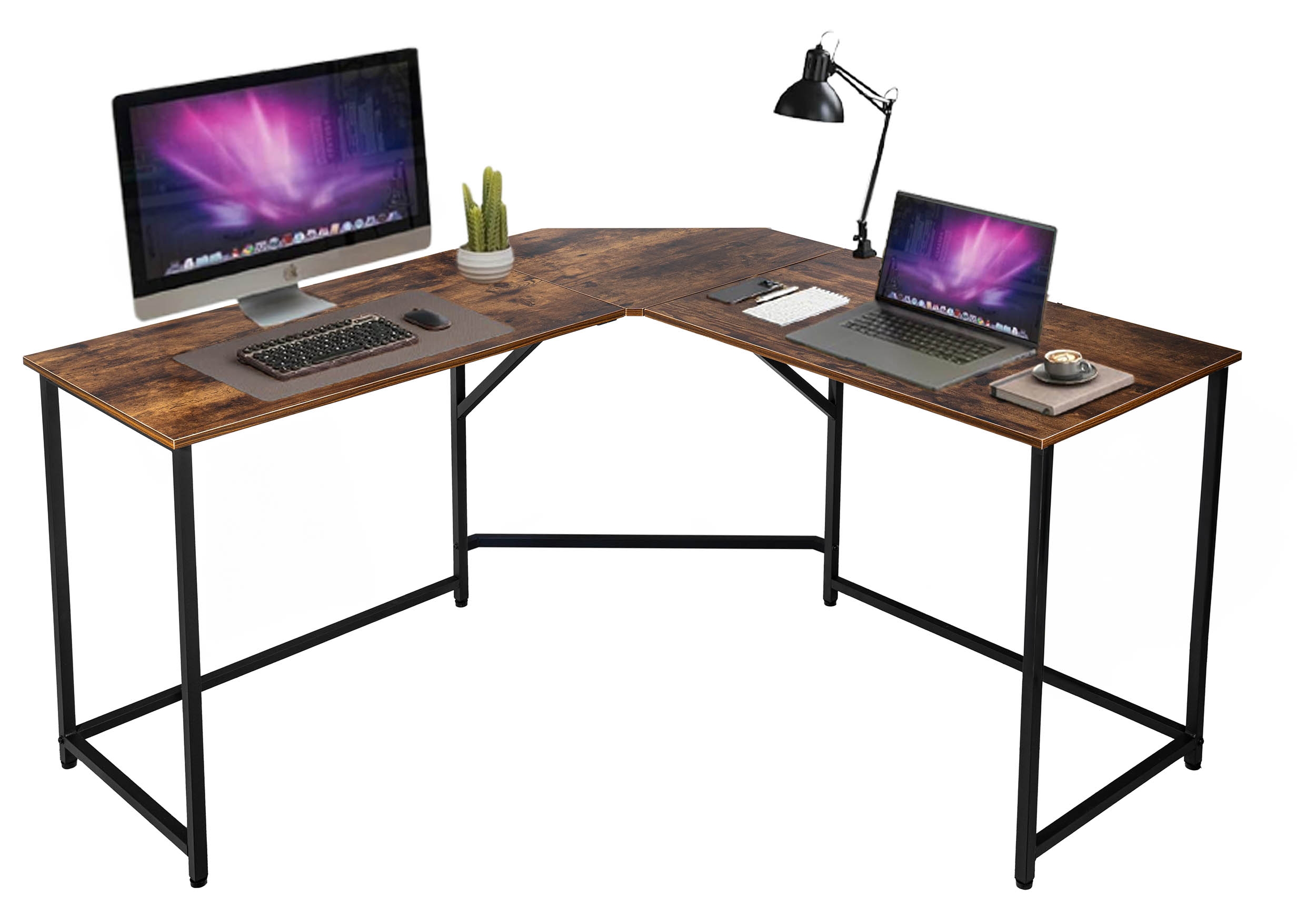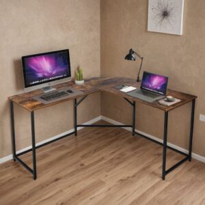 Narożne w kształcie litery L: Doskonale wpasowuje się w róg pomieszczenia, zapewniając maksymalne wykorzystanie przestrzeni i dużą powierzchnię roboczą.