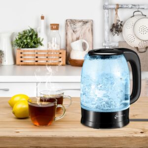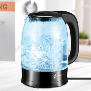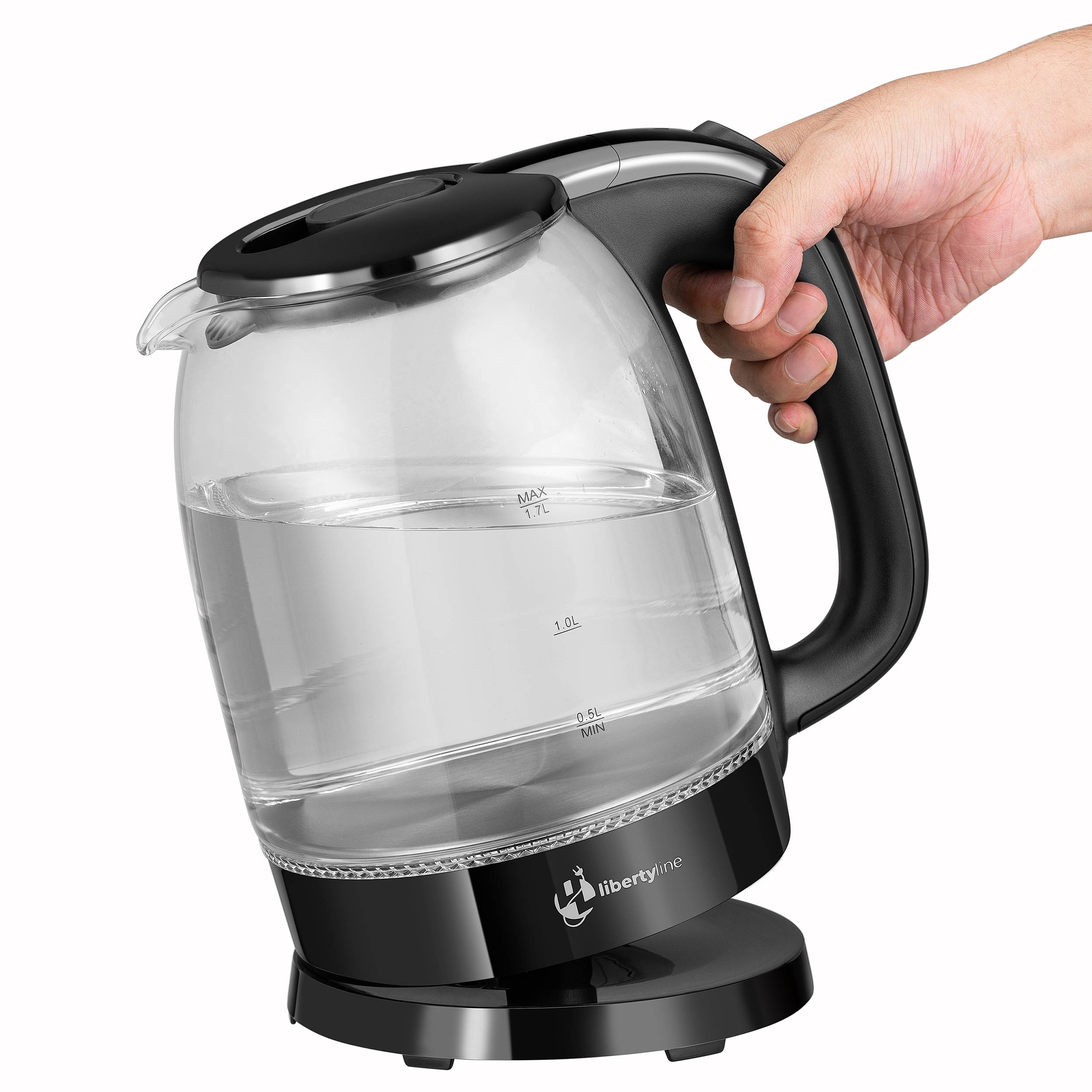 Czajnik elektryczny LibertyLine Brent to nowoczesne urządzenie o pojemności 1,7 litra, idealne do użytku domowego. Wyposażony w ukryty element grzewczy ze stali nierdzewnej 304 oraz moc 1850-2200W przy napięciu 220-240V, zapewnia szybkie gotowanie wody. Obrotowa podstawka 360° oraz przewód o długości 75 cm ułatwiają obsługę. Zbiornik wykonany z trwałego, wysokoborokrzemowego szkła łączy w sobie styl i funkcjonalność. Ręcznie otwierana pokrywa z przyciskiem, zabezpieczenie przed gotowaniem na sucho oraz automatyczne wyłączanie po zagotowaniu wody gwarantują bezpieczeństwo użytkowania. Elegancki design podkreśla niebieskie światło LED, sygnalizujące działanie czajnika. Idealny dla tych, którzy cenią wysoką jakość i stylowe rozwiązania w kuchni.