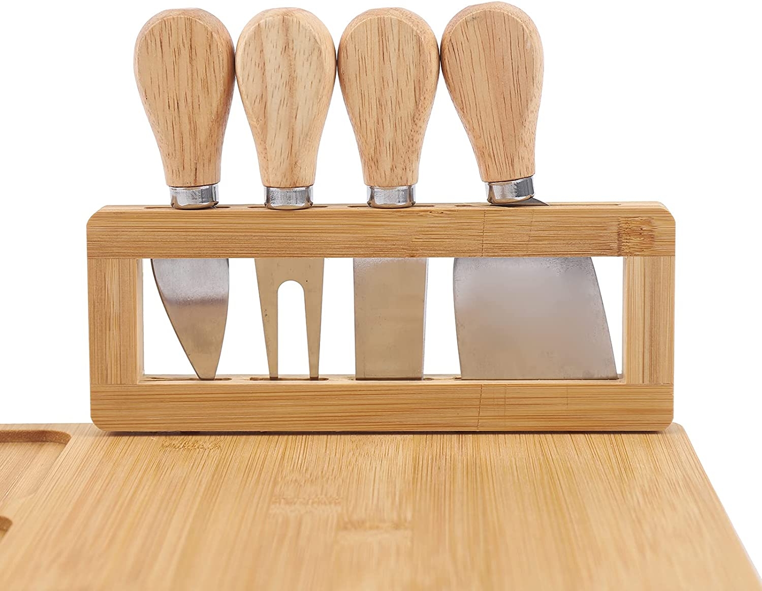 W komplecie: deska + komplet sztućców ze stali nierdzewnej na stojaku