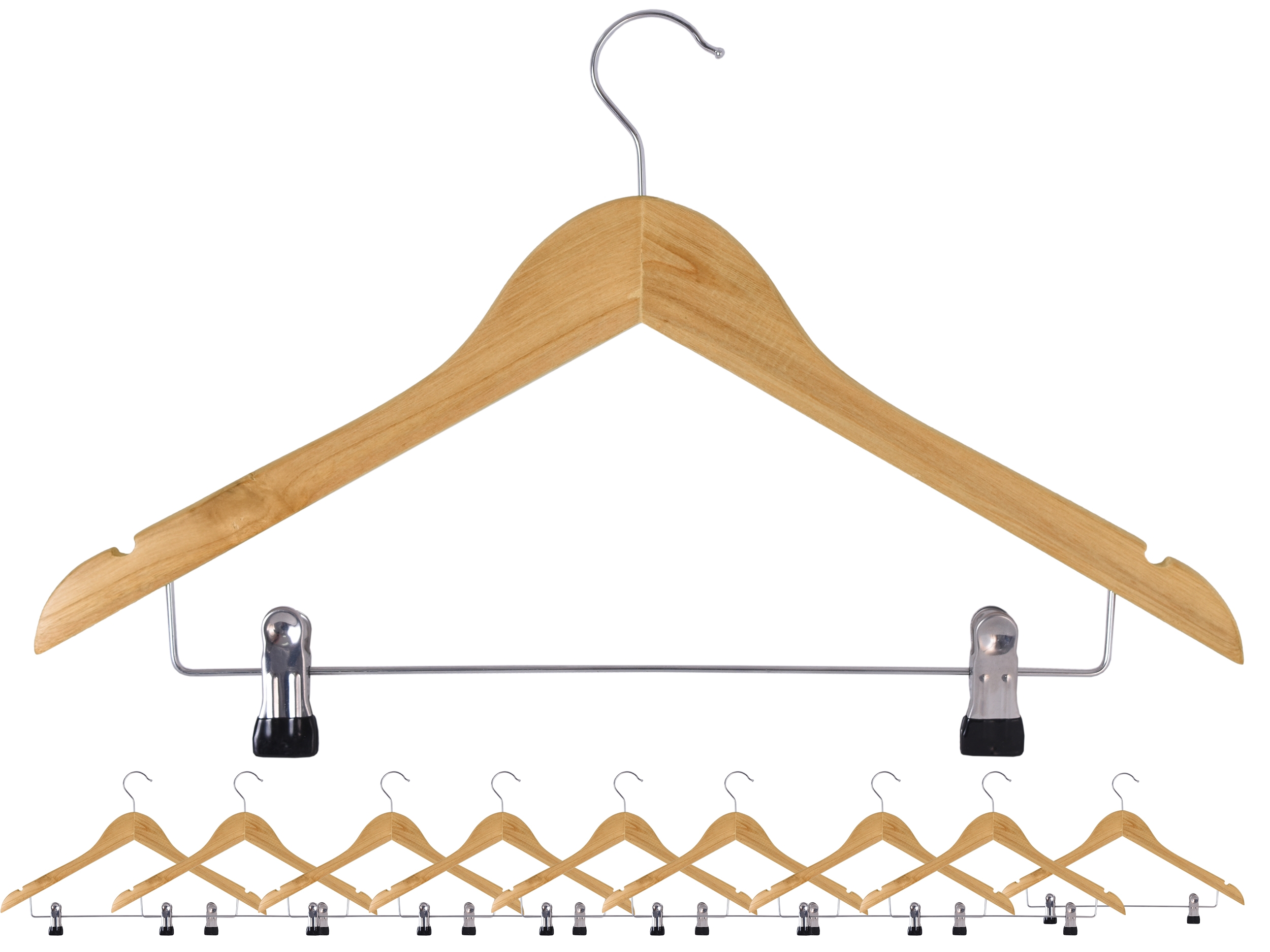 Przeznaczenie: przechowywanie odzieży | Kolory: naturalne drewno | W komplecie: 10 sztuk