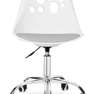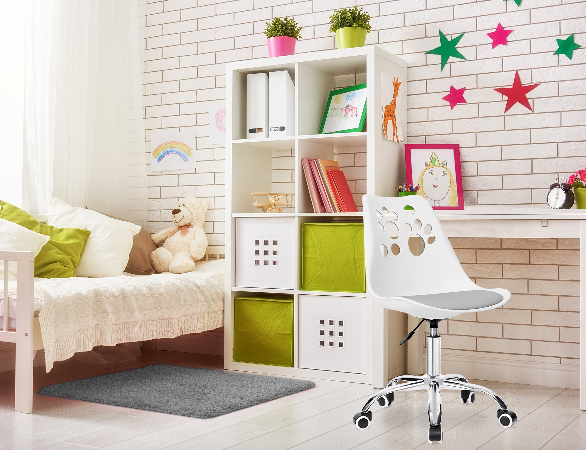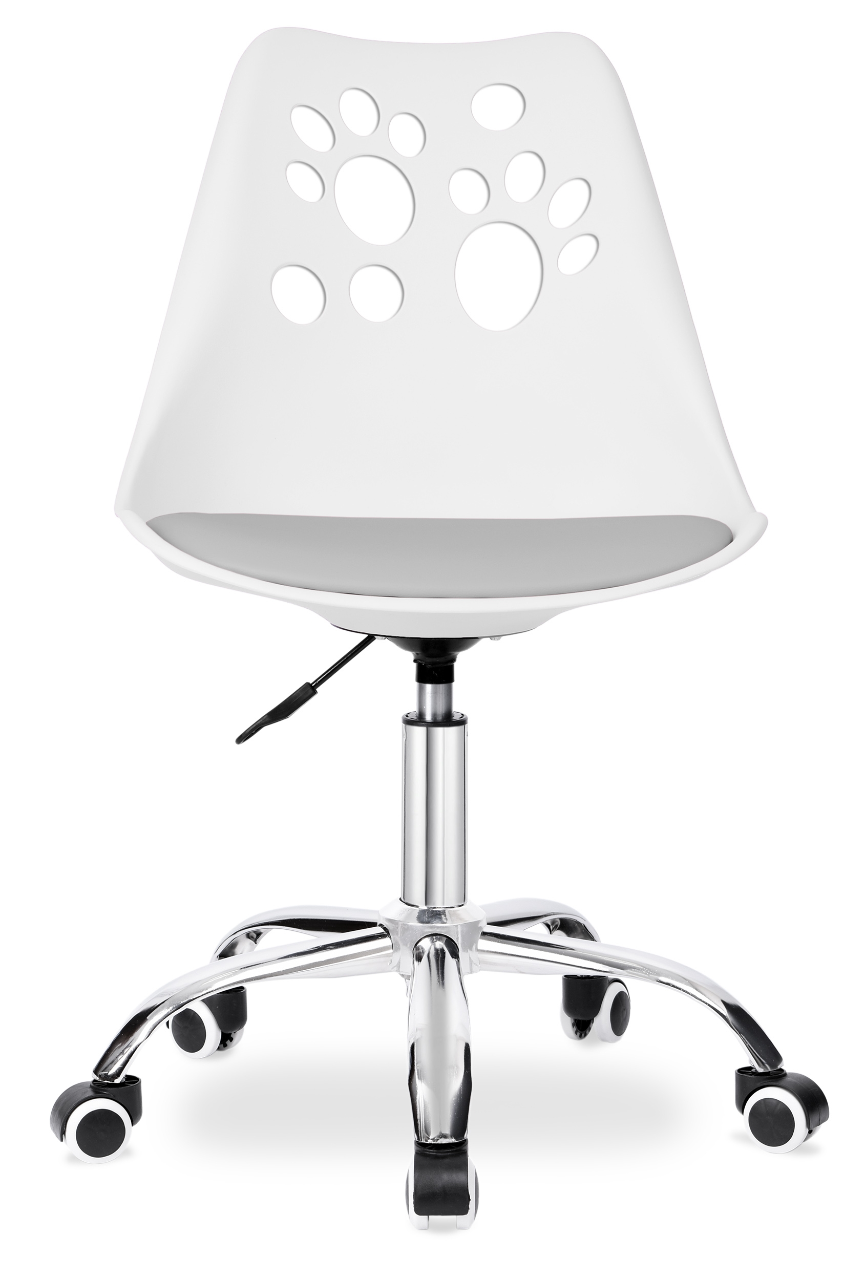 Krzesło obrotowe dziecięce Grover to solidny fotel biurowy z płynną regulacją wysokości. Oparcie wykonane z tworzywa w zabawne, zwierzęce wzorki- z pewnością zdobędzie uznanie podopiecznych. Miękkie, wygodne siedzisko z ekoskóry oraz stabilnej podstawy zwieńczonej chromem na wysoki połysk.