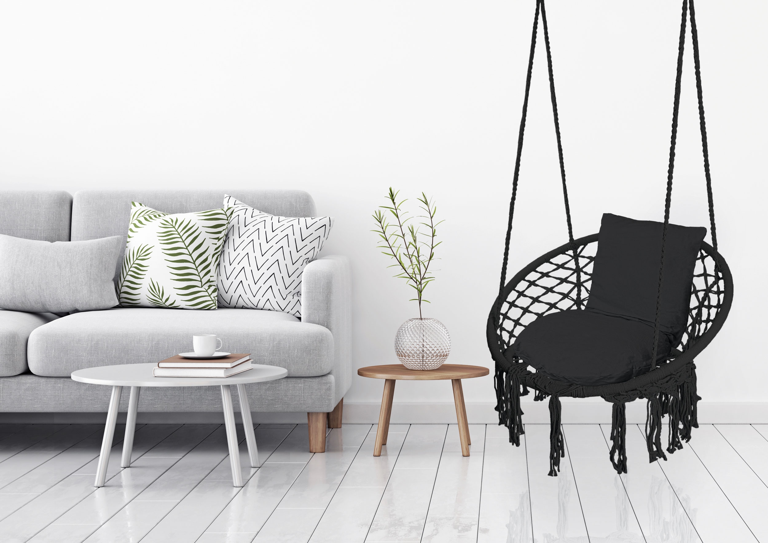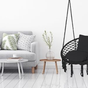 Fotel wiszący Bocianie gniazdo TOGO czarny dodatkowe poduszki