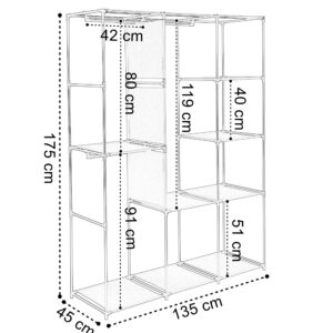 Dzięki kompaktowym wymiarom (175 x 135 x 45 cm) garderoba idealnie sprawdzi się w mniejszych pomieszczeniach.