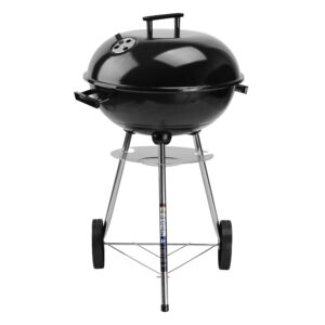Grill posiada wygodne, wytrzymałe bakelitowe rączki oraz dwa otwory wentylacyjne, co zapewnia doskonałą kontrolę nad temperaturą podczas grillowania. Kółka transportowe umożliwiają łatwe przemieszczanie grilla, a dolna półka jest idealna do przechowywania akcesoriów grillowych. Pokrywa wyposażona jest w praktyczny hak, który pozwala na łatwe zawieszenie jej z boku grilla, co zwiększa wygodę użytkowania. Rund to niezawodny i praktyczny grill, który doskonale sprawdzi się w każdym ogrodzie, gwarantując niezapomniane chwile spędzone na świeżym powietrzu z rodziną i przyjaciółmi.