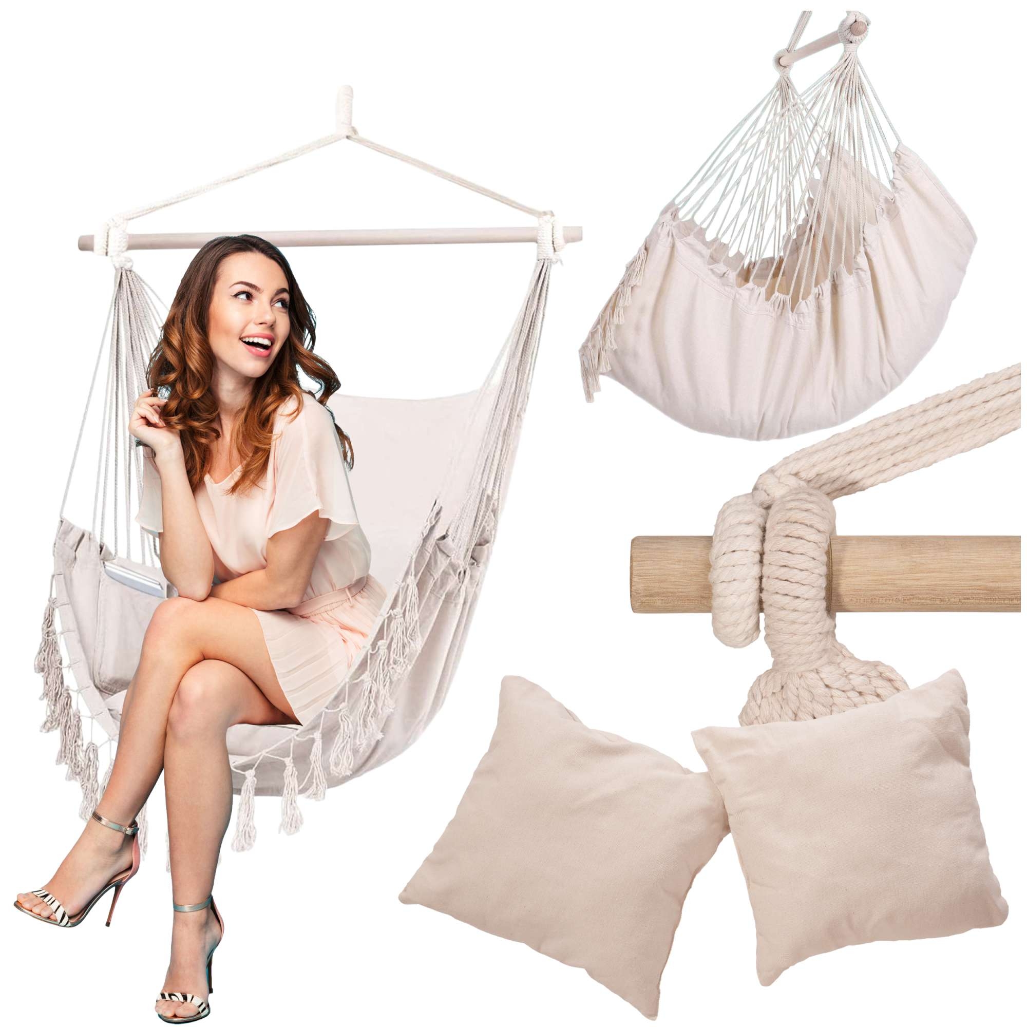 Hamak brazylijski krzesło wiszące BAHIO beżowe