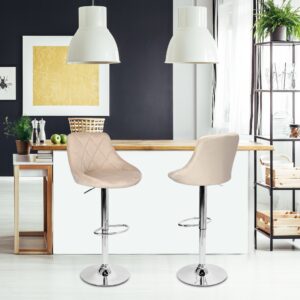 ✅Chromowane elementy – Chromowane elementy dodają Hokerowi Cydro nowoczesnego charakteru oraz eleganckiego wykończenia, co sprawia, że jest on wyjątkowo atrakcyjnym elementem wystroju wnętrza. Ich połyskująca powierzchnia efektownie kontrastuje z welurową tapicerką, nadając całej konstrukcji ekskluzywnego i nowoczesnego wyglądu.