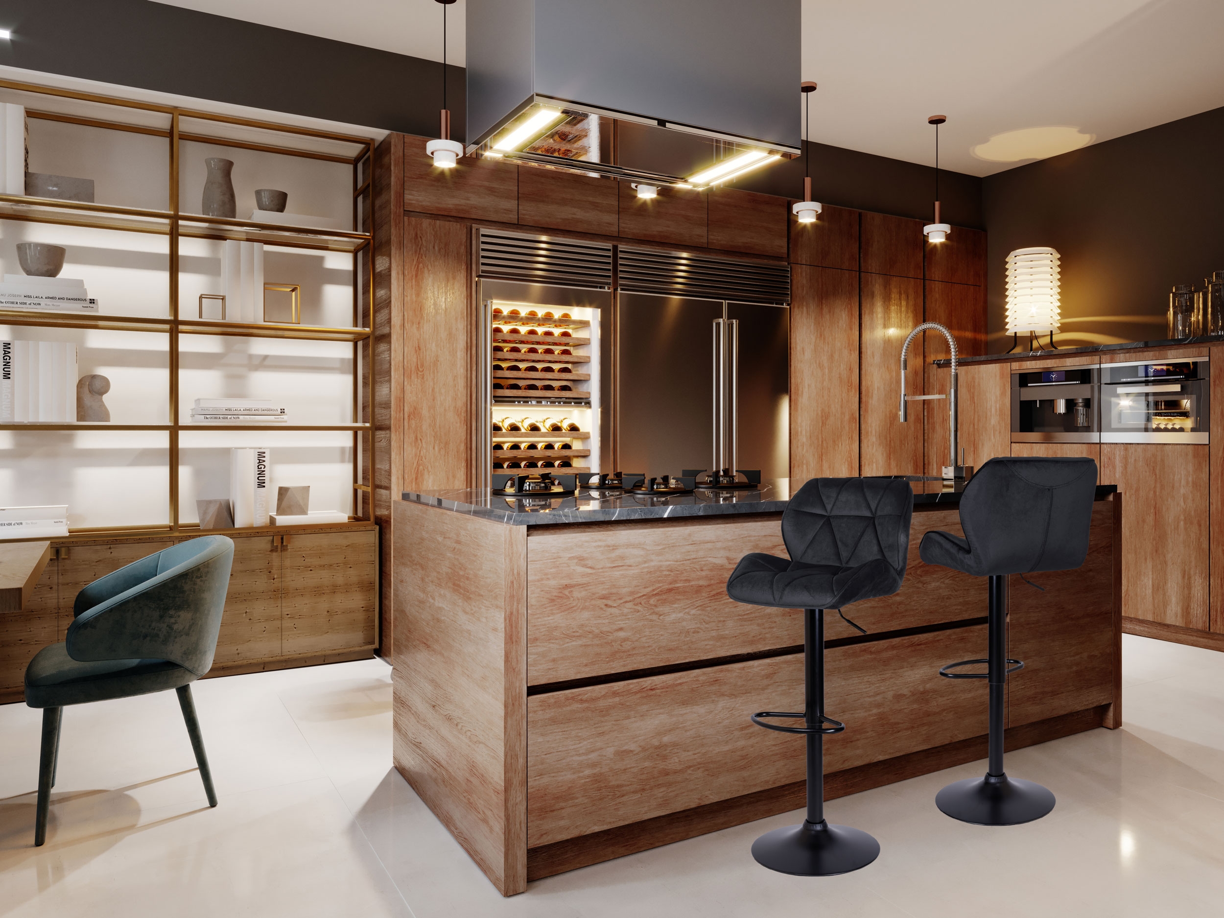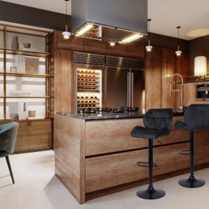 ✅Czarne elementy – Czarne elementy dodają hokerowi nowoczesnego charakteru oraz eleganckiego wykończenia, co sprawia, że jest on wyjątkowo atrakcyjnym elementem wystroju wnętrza. Ich połyskująca powierzchnia efektownie kontrastuje z welurową tapicerką, nadając całej konstrukcji ekskluzywnego i nowoczesnego wyglądu.