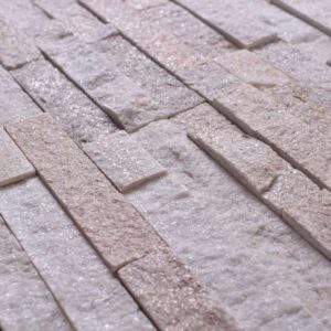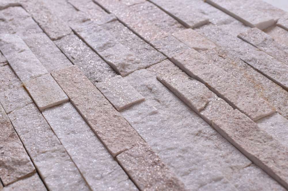 Kamień naturalny to elegancki i trwały materiał, który poprawnie zamontowany, będzie cieszył właściciela przez wiele lat. Wysoce dekoracyjny kamień w formie kostek białego kwarcu sklejonych w płytki gotowe do montażu to doskonały pomysł na uatrakcyjnienie elewacji. Oferowany kamień elewacyjny odporny jest na działanie czynników atmosferycznych, deszczu, mrozu, śniegu i promieni słonecznych. Naturalny kamień to niezwykle wytrzymały materiał elewacyjny. Płytki elewacyjne z kamienia montuje się w wygodny sposób, ważne jest jednak zastosowanie do tego celu materiałów wysokiej jakości. Płytki wykonane w 100% z kamieni naturalnych (łupki, kwarcyty i inne w zależności od modelu).