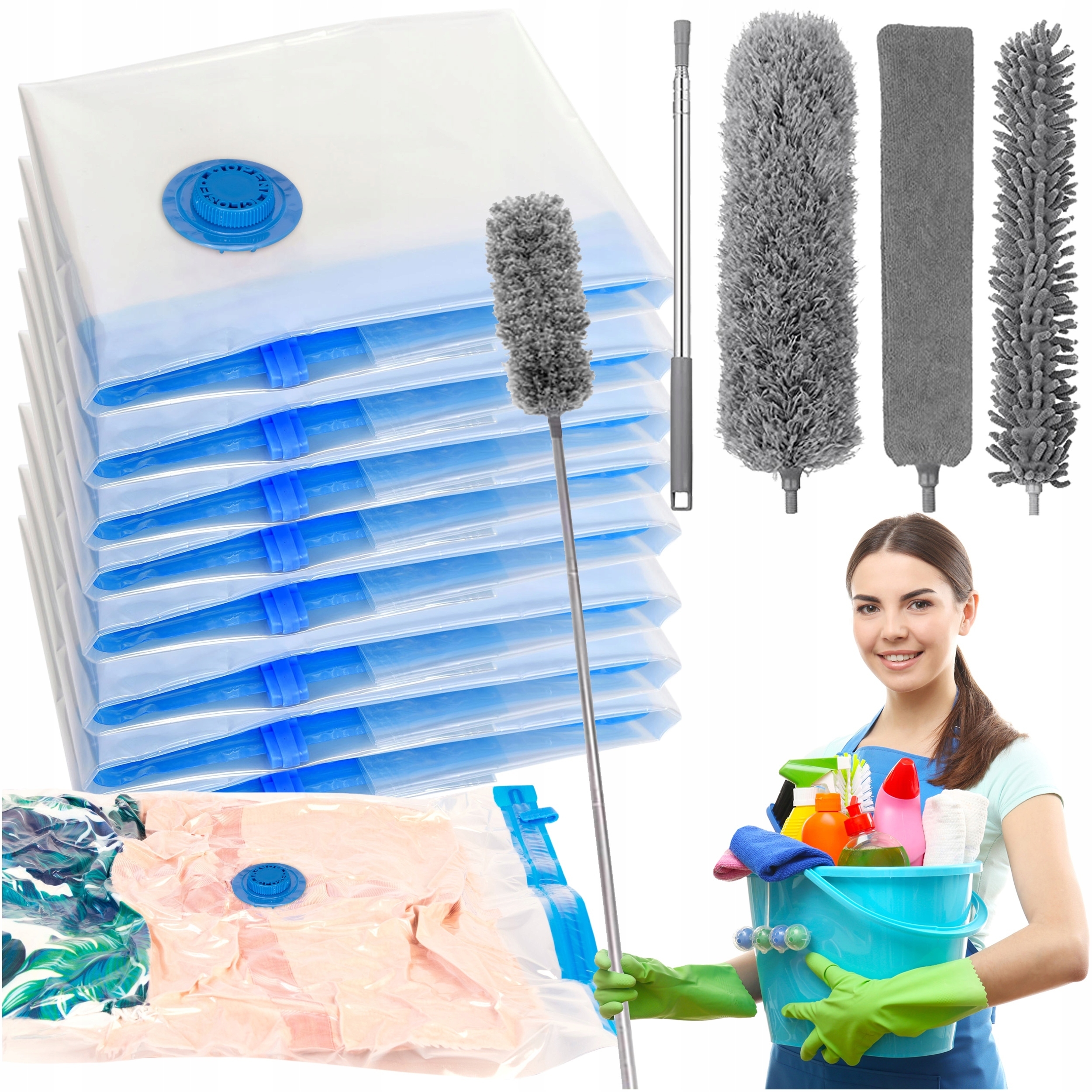 Worki próżniowe na ubrania DEBORA zestaw 10 sztuk ➕GRATIS MIOTEŁKA TELESKOPOWA 3 KOŃCÓWKI