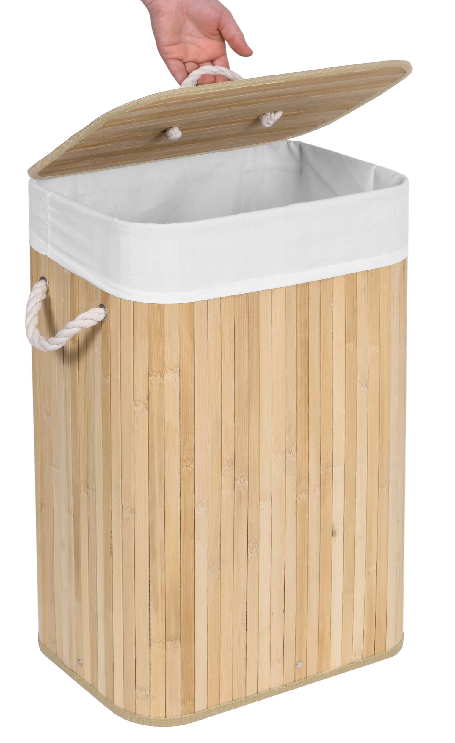 Najtrwalsze pojemniki na odpady o pojemności 80 litrów. Wykonane z naturalnego bambusa. Wnętrze wypełnia materiałowa torba. Prosta budowa, sztywna konstrukcja. Ukrywa nieprzyjemne zapachy. Umożliwia wygodne szybkie i pranie.