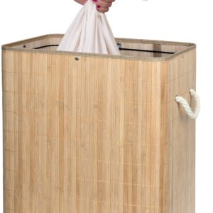 Jeśli nudzi Cię dotychczasowy kosz na pranie, to proponujemy rewelacyjny, bambusowy kosz o pojemności 100L, który idealnie spełni swoją funkcję i ozdobi Twoją łazienkę. Kosz został wykonany z naturalnego bambusa, dzięki czemu jest trwały i przyjazny dla środowiska. Można go używać nie tylko w łazience i pralni, ale również jako pojemnik na zabawki. Kosz posiada dużą pojemność, co ułatwia przechowywanie większej ilości bielizny. Wnętrze wyłożone jest wyciąganym wkładem materiałowym, co ułatwia jego czyszczenie. Dodatkowo, kosz jest wyposażony w wygodną, uchylną pokrywę oraz dwa uchwyty z liny, co ułatwia jego przenoszenie z miejsca na miejsce. Jego zastosowanie jest uniwersalne, a jedynym ograniczeniem jest wyobraźnia.