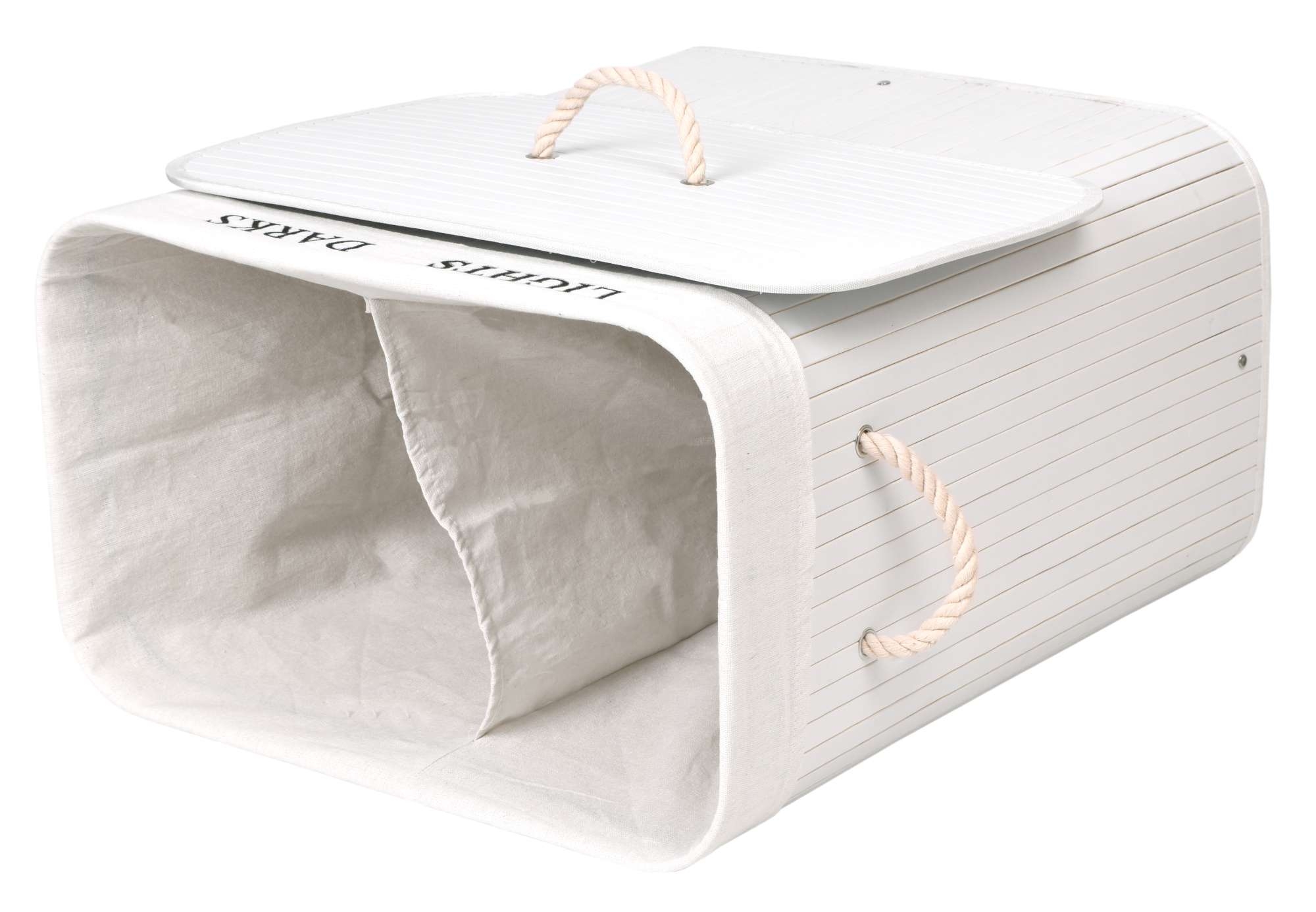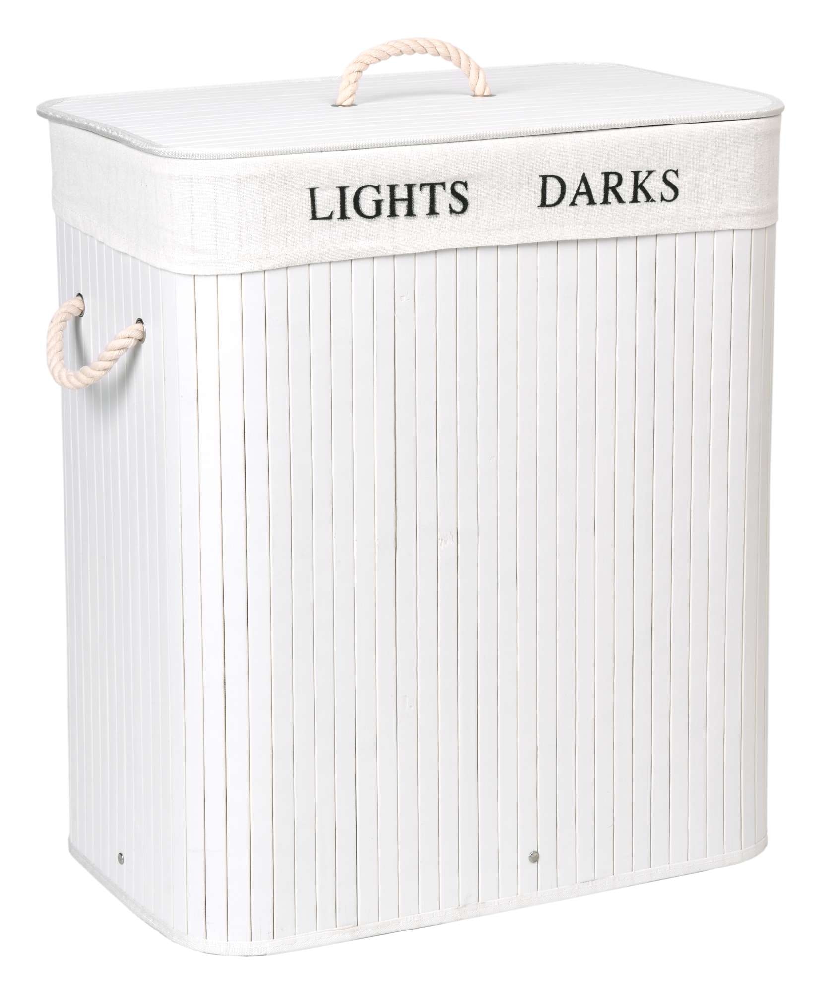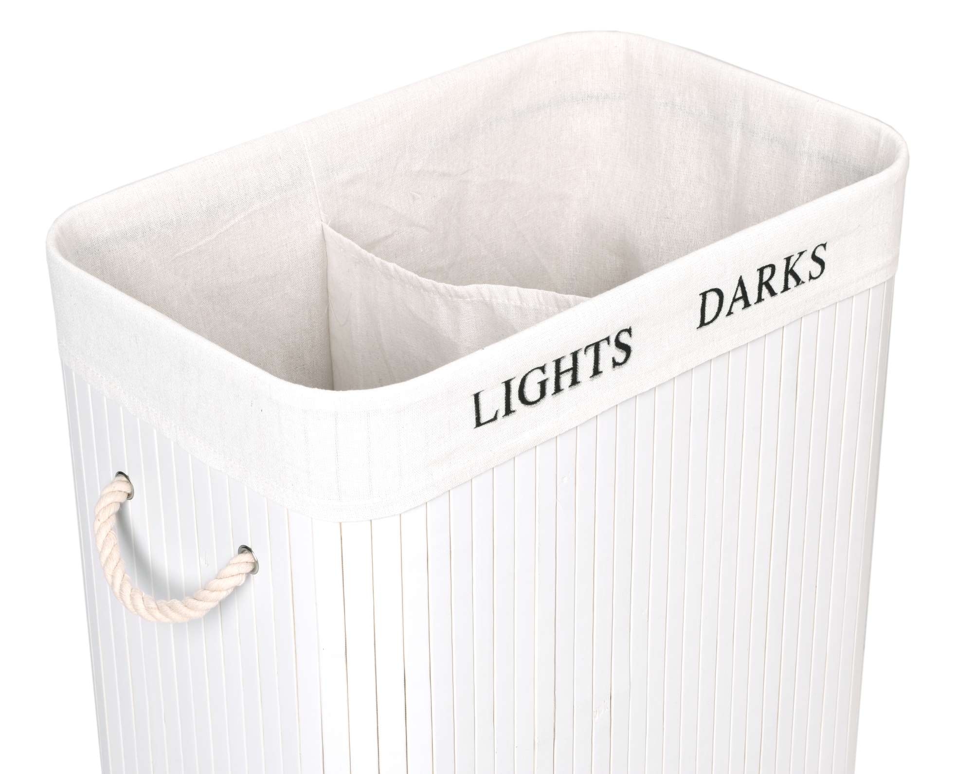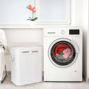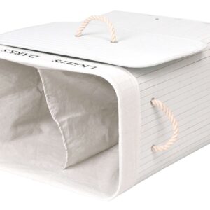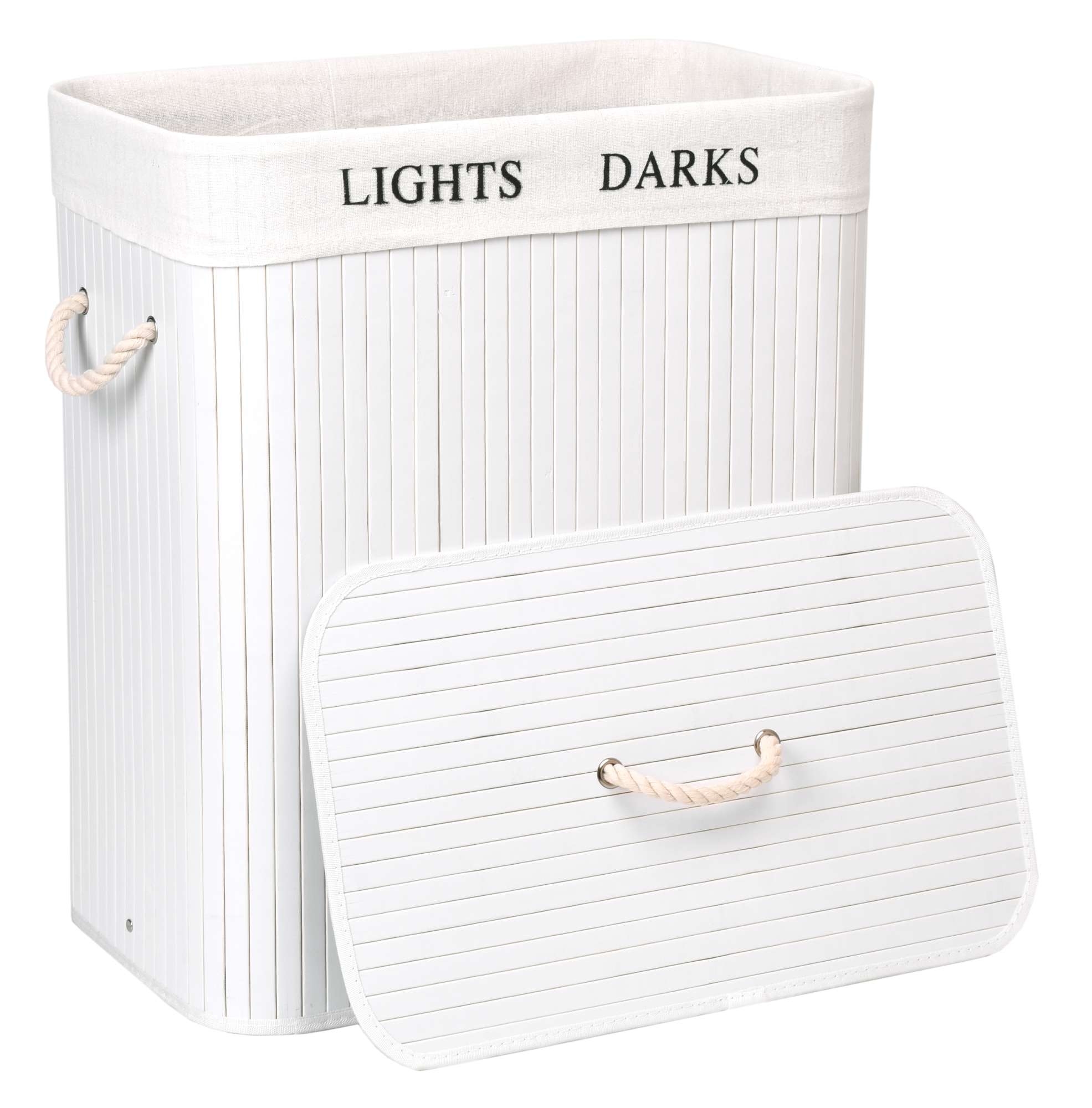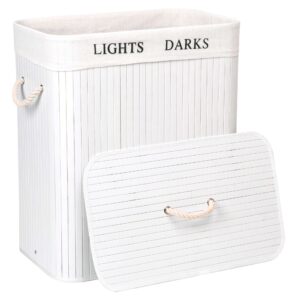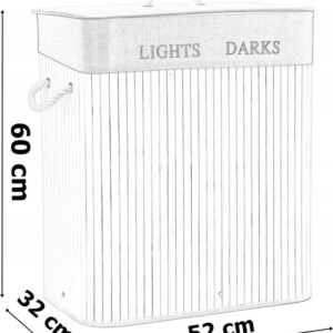 Kosz bambusowy z pokrywą 100L 2 komory biały