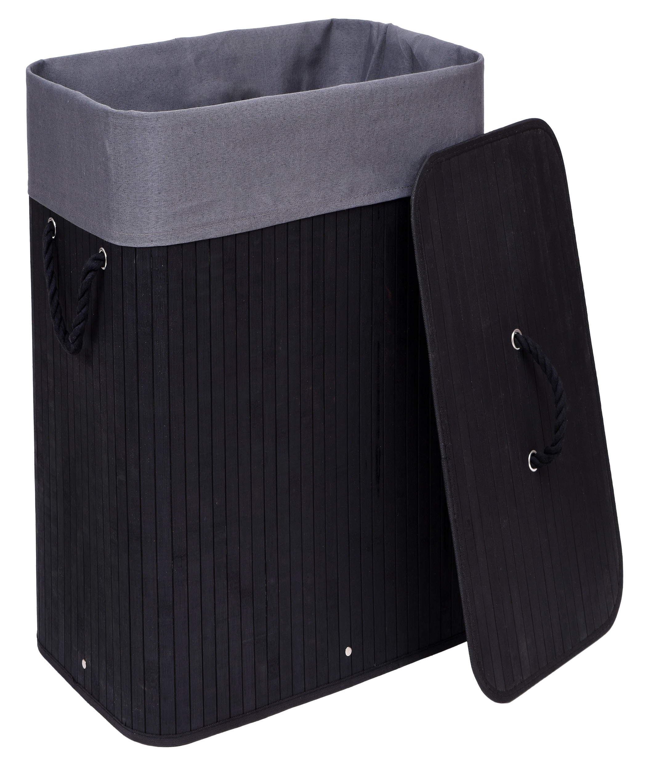 Kosz na pranie bambusowy z pokrywą 80L czarno-szary