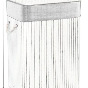 Kosz narożny na pranie bambusowy z pokrywą biały