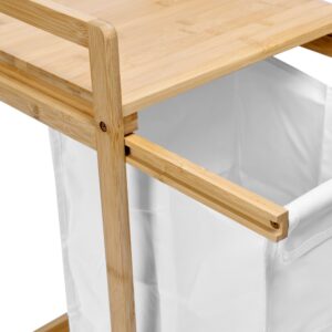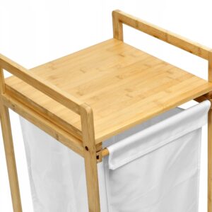 Bambusowy kosz na pranie Hanoi to estetyczny i pojemny kosz, który pomieści mnóstwo odzieży. Wykonany ze szlifowanego bambusa, nie ma ostrych krawędzi, jest przyjemnie gładki i starannie wykończony. Górna półka może służyć jako miejsce na akcesoria łazienkowe, środki piorące, a także jako miejsce na dekoracje czy świece zapachowe. Kosz posiada szyny, które ułatwiają napełnianie i opróżnianie materiałowego worka. Dzięki nim cały worek można wysunąć i przetransportować. Materiał przypięty jest na rzep, można go zdjąć i wyprać. Hanoi złożysz bez wiercenia i specjalistycznych narzędzi. Montaż zajmuje dosłownie chwilę, a wszystko co niezbędne do jego złożenia znajdziesz w zestawie.