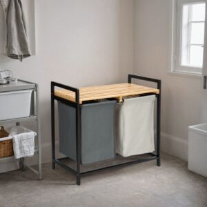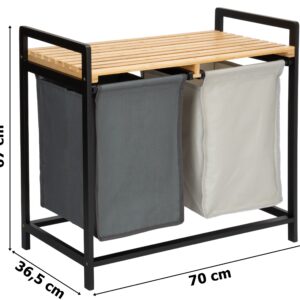 kosz na pranie lub zabawki bambusowy HANOI BLACK 2 przegrody DUO KOLOR