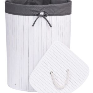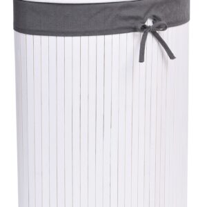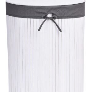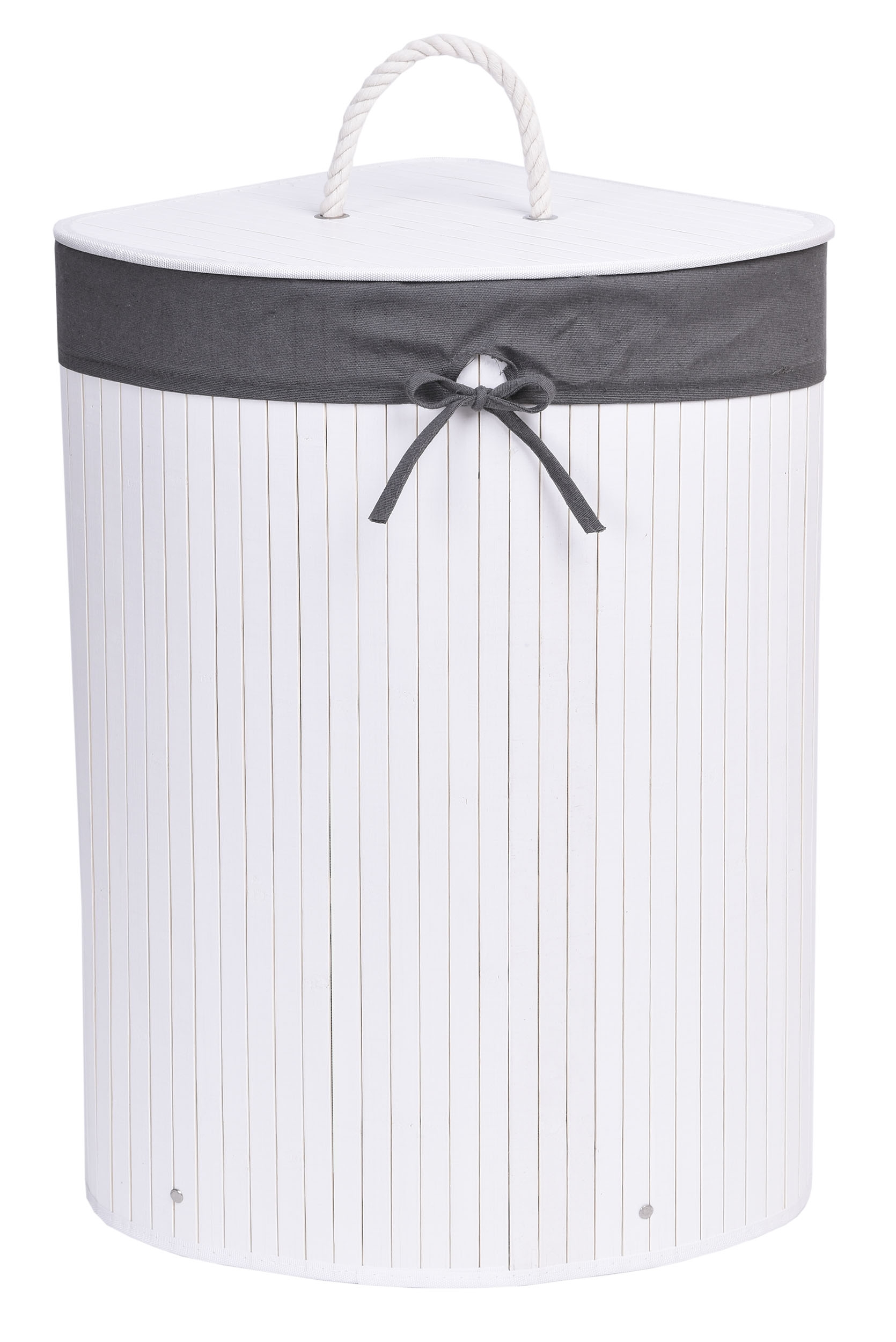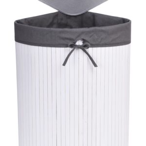 Kosz narożny na pranie bambusowy z pokrywą biało-szary