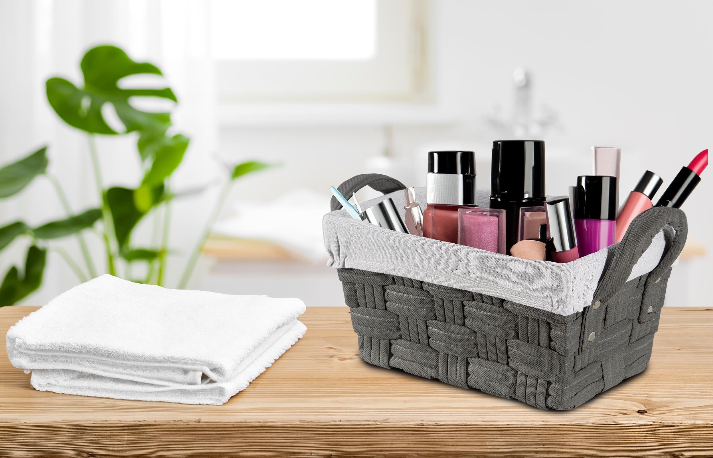 Koszyk pleciony Tiana to doskonałe połączenie funkcjonalności i estetyki. Wyplatany ręcznie z 100% poliestru, z wyściółką lnianą w środku, zapewnia nie tylko trwałość, ale także elegancję. Jego kompaktowe wymiary (30x20x15 cm) sprawiają, że świetnie nadaje się do przechowywania różnych drobiazgów.