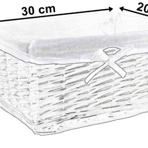 Koszyki wiklinowe idealnie pasują do łazienki oraz innych pomieszczeń np. sypialni, salonu, kuchni. Można w nich przechowywać różne drobiazgi np. kosmetyki. Koszyk wykonany jest z naturalnej wikliny oraz wypleciony ręcznie. Środek wykończony jest lnianą wyściółką, którą można w łatwy sposób wyciągnąć i wyprać.