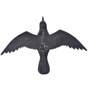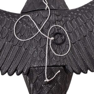 Odstraszacz w postaci kruka, znakomicie spełnia swoją rolę odstraszając małe ptaki, takie jak gołębie, sikorki, kosy itd…