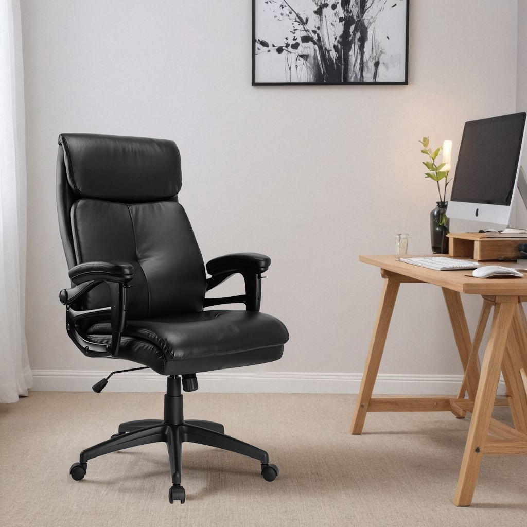 Regulowane podłokietniki pokryte miękką ekoskórą z wypełnieniem: Zwiększają komfort użytkowania i dodają elegancji.