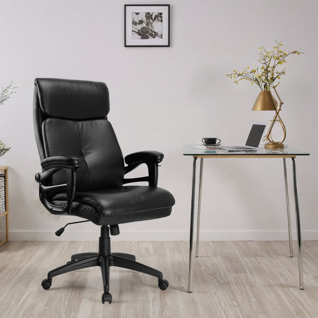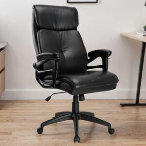Fotel CONCORD wykonany jest z wysokiej jakości ekoskóry w kolorze czarnym, co nadaje mu elegancki i profesjonalny wygląd. Czarna kolorystyka elementów z tworzywa dodatkowo podkreśla jego nowoczesny design.