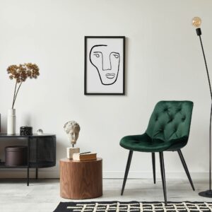 Model Eliot charakteryzuje się harmonijnym połączeniem kolorystycznym siedziska z czarnymi, metalowymi nogami. Ta kombinacja nadaje krzesłu ponadczasowy charakter, który świetnie wpasowuje się w różnorodne aranżacje wnętrz. Miękkie i przyjemne w dotyku welurowe siedzisko, wzbogacone o subtelne pikowanie, podkreśla wygodę i unikalny wygląd mebla.