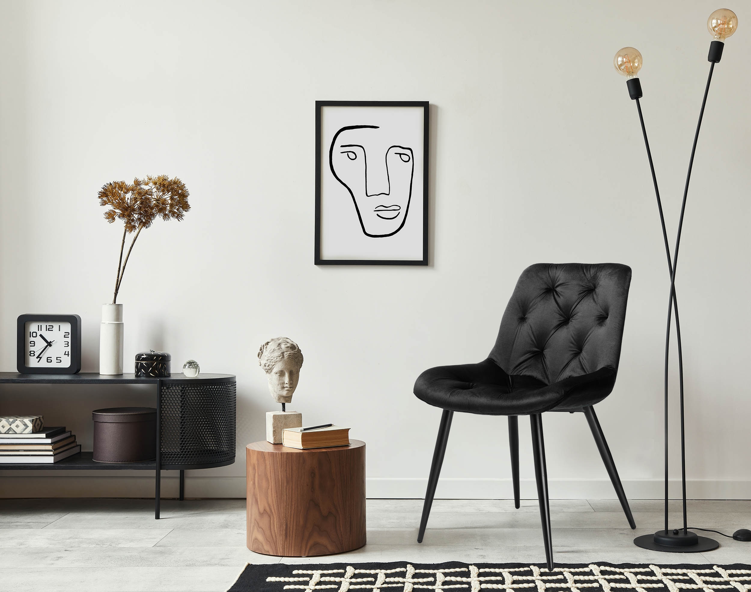 Styl loftowy modelu Eliot, uzupełniony o welurowe siedzisko, sprawia, że krzesło idealnie komponuje się zarówno w nowoczesnych, jak i bardziej tradycyjnych wnętrzach, dodając im charakteru i wyrafinowania. Pikowane welurowe siedzisko dodaje elementu przytulności i luksusu, czyniąc ten model doskonałym wyborem dla osób poszukujących komfortu i elegancji.