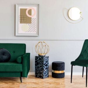 Wyjątkowe połączenie przyjemnego, aksamitnego materiału welurowego z metalowymi nogami w najmodniejszym, czarnym kolorze. Doskonałe do stylu industrialnego, loftowego. Wysokie oparcie i miękkie, komfortowe siedzisko- wprawi Twoich gości w prawdziwy zachwyt. To synonim wygody i luksusu. Aksamitny materiał dodaje wnętrzu szyku i elegancji.