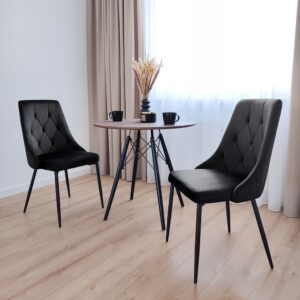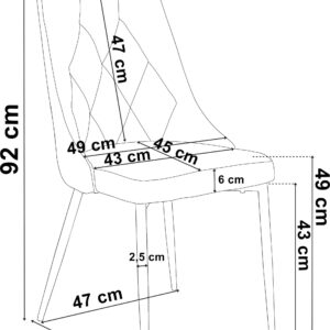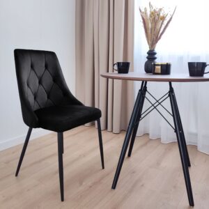 Wyjątkowe połączenie przyjemnego, aksamitnego materiału welurowego z metalowymi nogami w najmodniejszym, czarnym kolorze. Doskonałe do stylu industrialnego, loftowego. Wysokie oparcie i miękkie, komfortowe siedzisko- wprawi Twoich gości w prawdziwy zachwyt. To synonim wygody i luksusu. Aksamitny materiał dodaje wnętrzu szyku i elegancji.