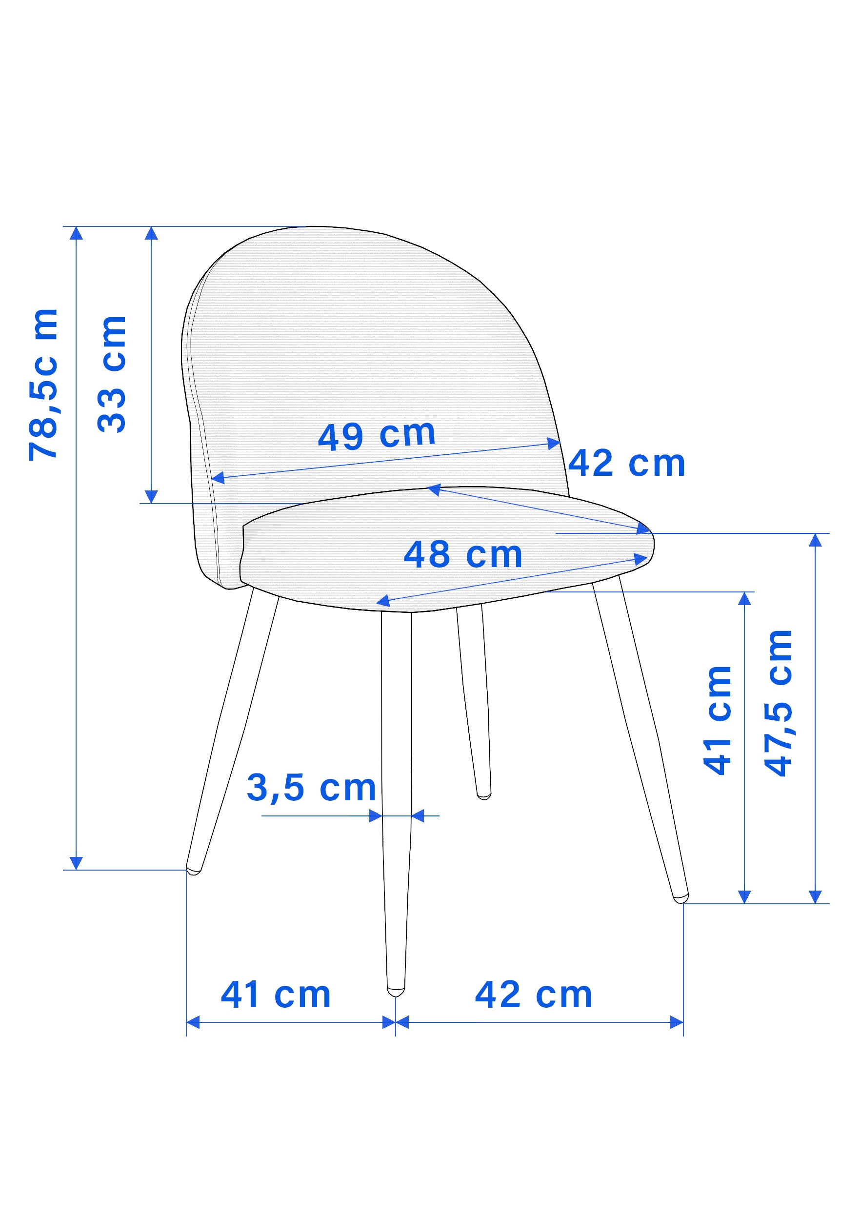 Wyjątkowe połączenie przyjemnego, aksamitnego materiału welurowego z metalowymi czarnymi nogami. Krzesło bardzo wygodne, stabilne, z profilowanym oparciem. Nie czekaj! Odśwież swoje pomieszczenie już teraz!