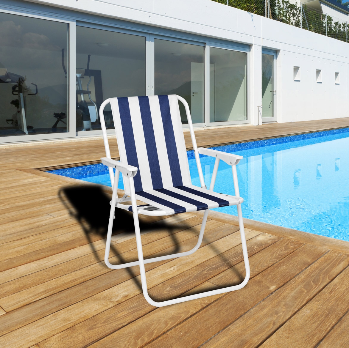 Krzesło turystyczne składane Alan granatowe paski