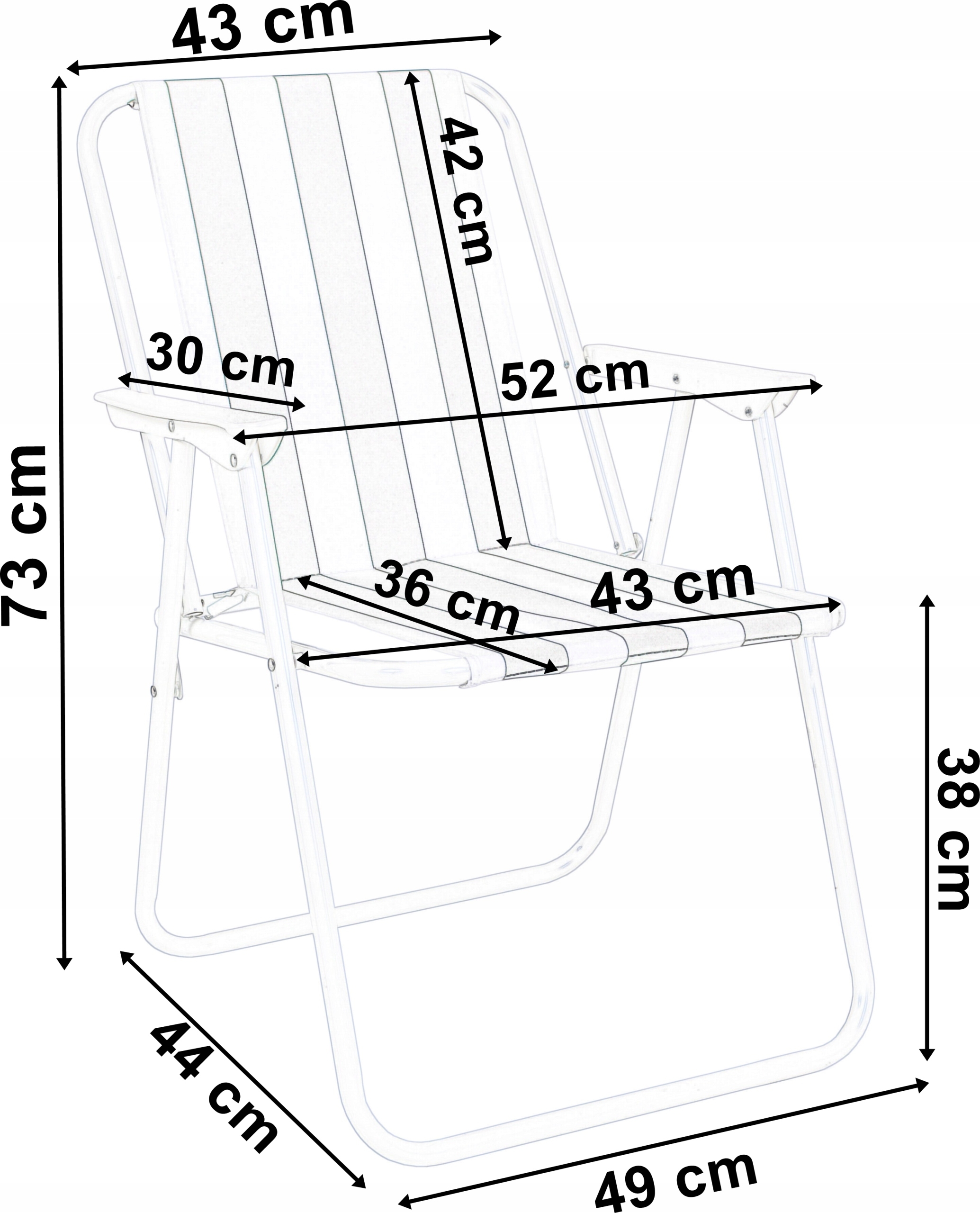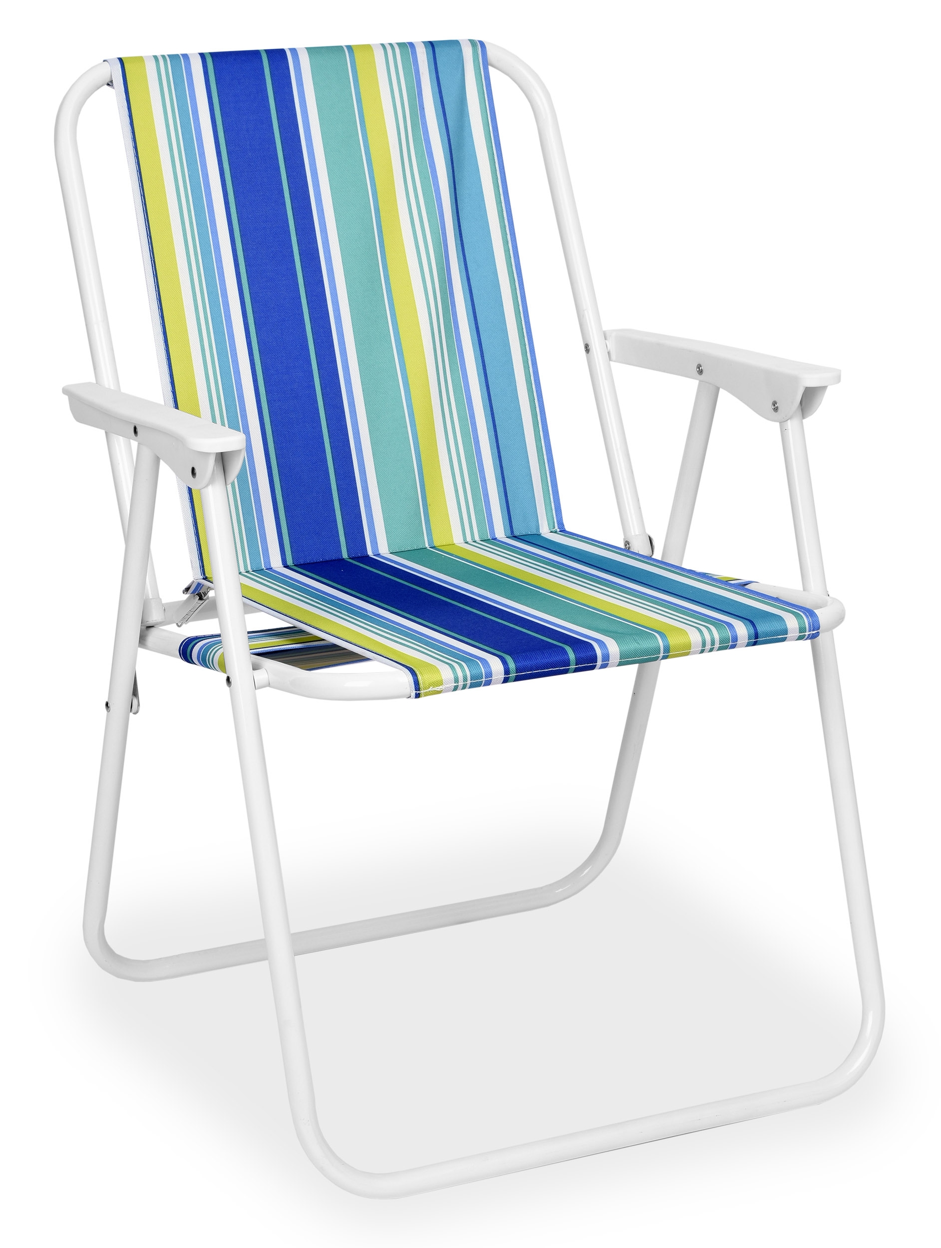 Wygodne i stabilne krzesełko turystyczne, idealne na działkę, plażę lub kemping. Fotel jest składany i po złożeniu zajmuje mało miejsca, dzięki czemu łatwo się go transportuje na miejsce wypoczynku. Wytrzymała konstrukcja została wykonana ze stalowych rurek malowanych proszkowo.