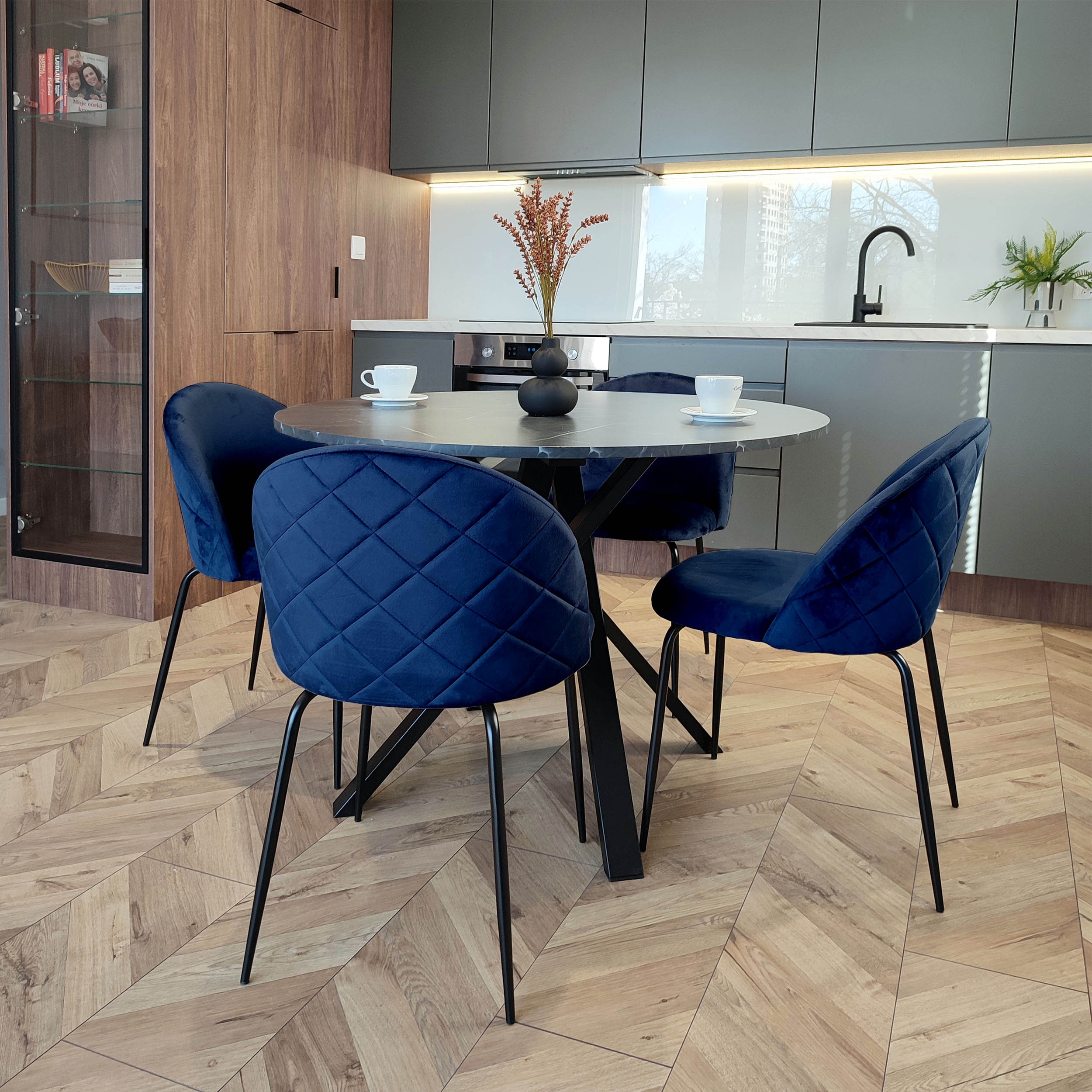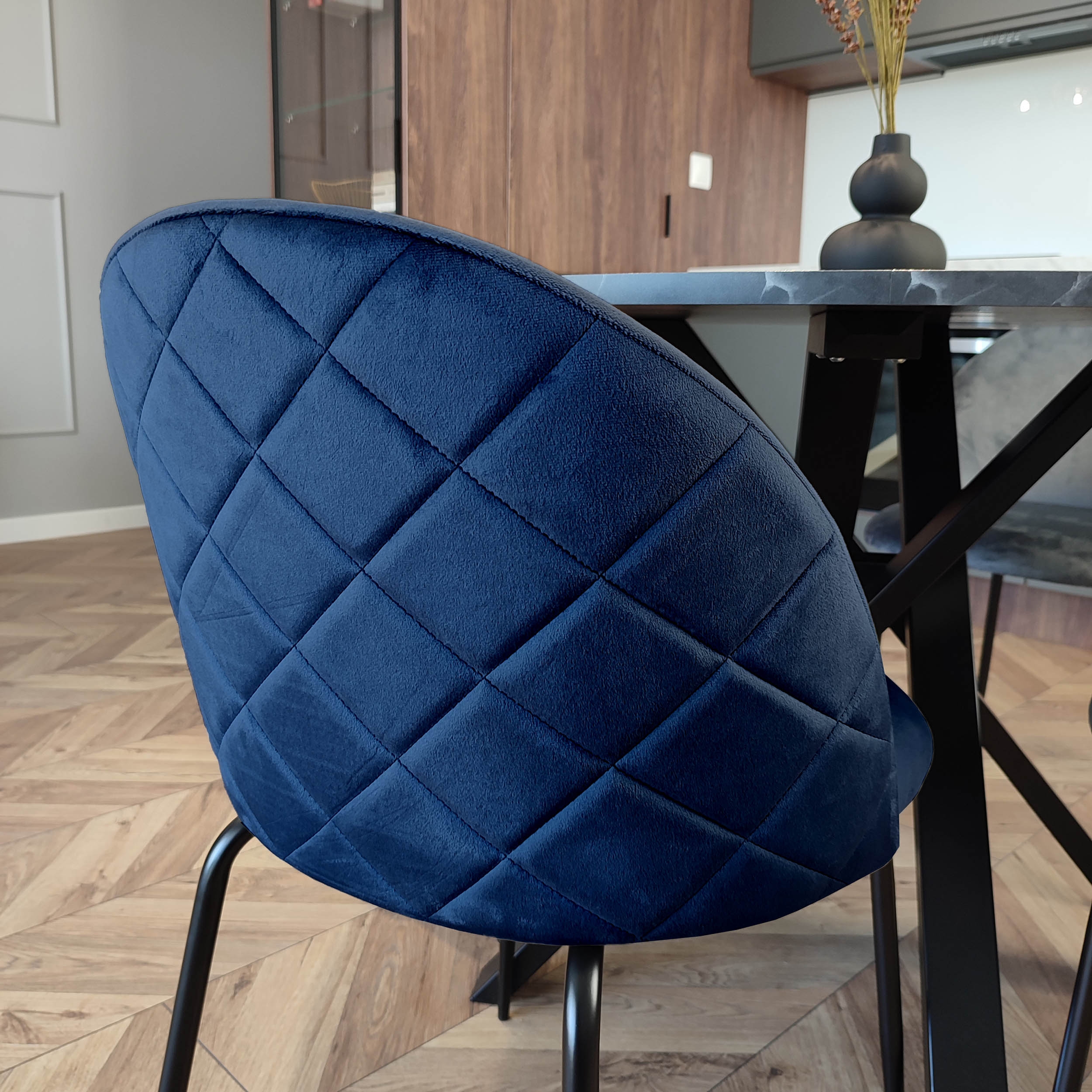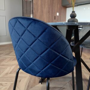 Unikalne krzesło Fargo wyróżnia się nowoczesnym designem i nietuzinkowym połączeniem miękkiego weluru oraz metalowych nóg. Wykonane z najwyższej jakości materiałów, z dbałością o każdy detal, z pewnością przyciągnie uwagę swoim geometrycznym, pikowanym wzorem w kształcie rombów. Krzesło Fargo to nie tylko designerski element dekoracyjny, ale także bardzo wygodne meble, idealne do nowoczesnych wnętrz w stylu loftowym i nowoczesnym. Doskonale sprawdzi się w salonach, restauracjach, ekskluzywnych sklepach, salonach kosmetycznych/fryzjerskich, eleganckich biurach czy punktach informacyjnych. Połączenie weluru i metalowych nóg doda pomieszczeniu nutę elegancji i niepowtarzalnego charakteru.