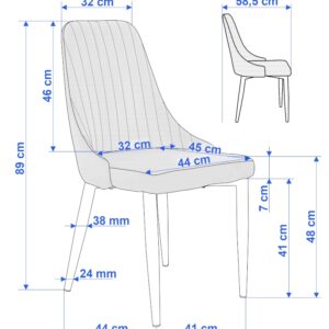 Wyjątkowe połączenie przyjemnego, aksamitnego materiału welurowego z metalowymi nogami w najmodniejszym, czarnym kolorze. Doskonałe do stylu industrialnego, loftowego. Wysokie oparcie i miękkie, komfortowe siedzisko- wprawi Twoich gości w prawdziwy zachwyt. To synonim wygody i luksusu. Aksamitny materiał dodaje wnętrzu szyku i elegancji.