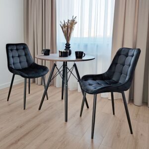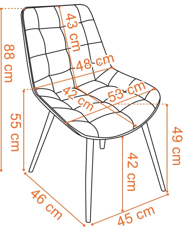Tapicerowane i pikowane krzesło z przeszyciami. Ciekawy i wyrazisty wzór, który idealne wkomponuje się do wnętrz w stylistyce skandynawskiej lub vintage, nadając nieco ciepłego wyrazu. Siedzisko jest wyprofilowane i zapewnia komfortowe oparcie dla pleców. Metalowe nogi krzesła zapewniają stabilne podparcie na każdej powierzchni. Kupując u nas, kupujesz od bezpośredniego producenta!