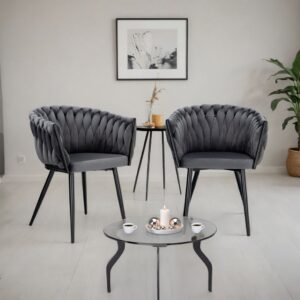 Krzesło welurowe plecione COFTON BLACK VELVET grafitowy