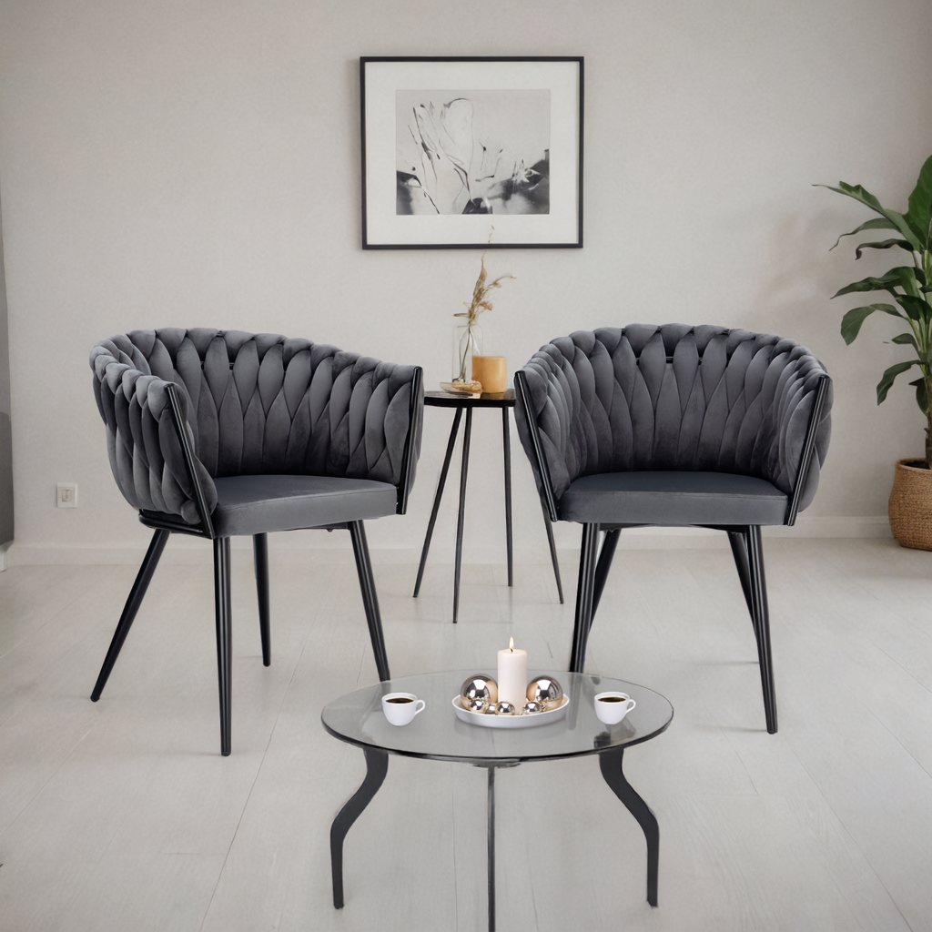 Krzesło welurowe plecione COFTON Black VELVET grafitowy