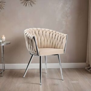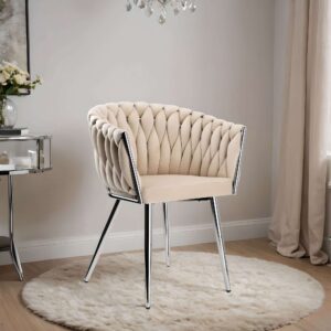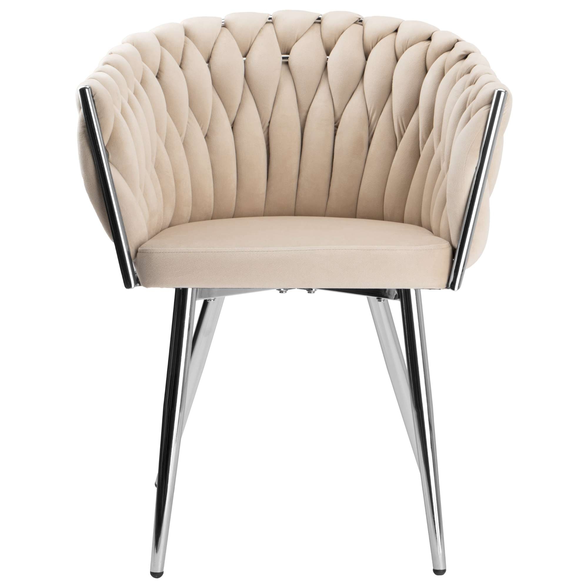 Krzesło welurowe plecione COFTON chrom VELVET beżowy