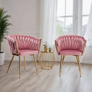Krzesło welurowe plecione COFTON gold VELVET różowy