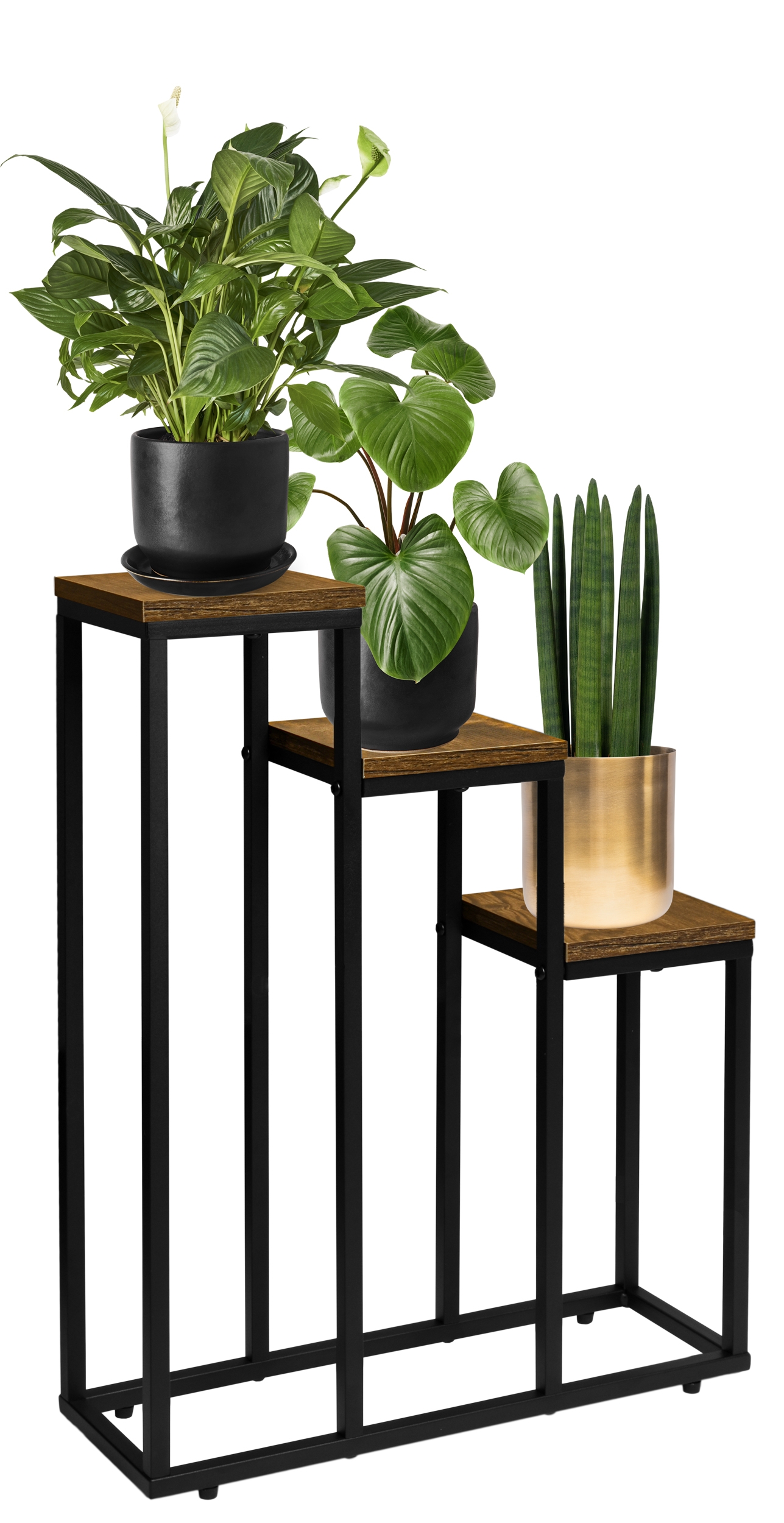 Loren to kwietnik wykonany z solidnej, malowanej proszkowo stali oraz płyty laminowanej w kolorze postarzanego dębu. Ma prosty i atrakcyjny design, który pasuje do różnych wnętrz, w tym stylu loftowego, klasycznego i industrialnego. Dzięki wytrzymałej stalowej konstrukcji oraz stabilnym półkom, kwietnik utrzymuje nawet ciężkie kwiaty i dekoracje. Jest również wyposażony w ochronne podkładki i wykonany z najwyższej jakości materiałów. Pallen to idealny wybór dla osób, które chcą eksponować swoje rośliny w wyjątkowy sposób.