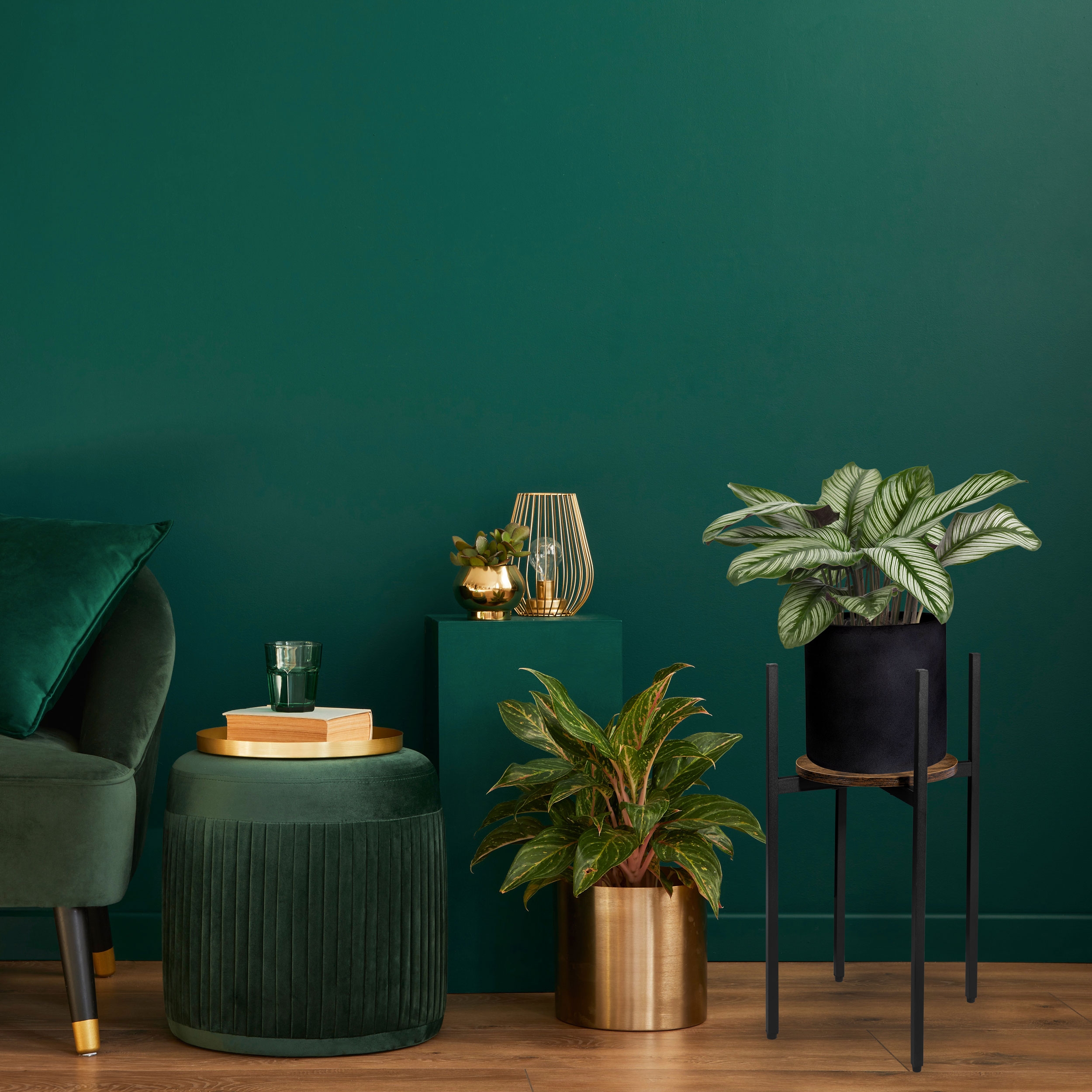 Uwaga: doniczka została użyta do celów aranżacyjnych. Przedmiotem sprzedaży jest metalowy, czarny stojak.