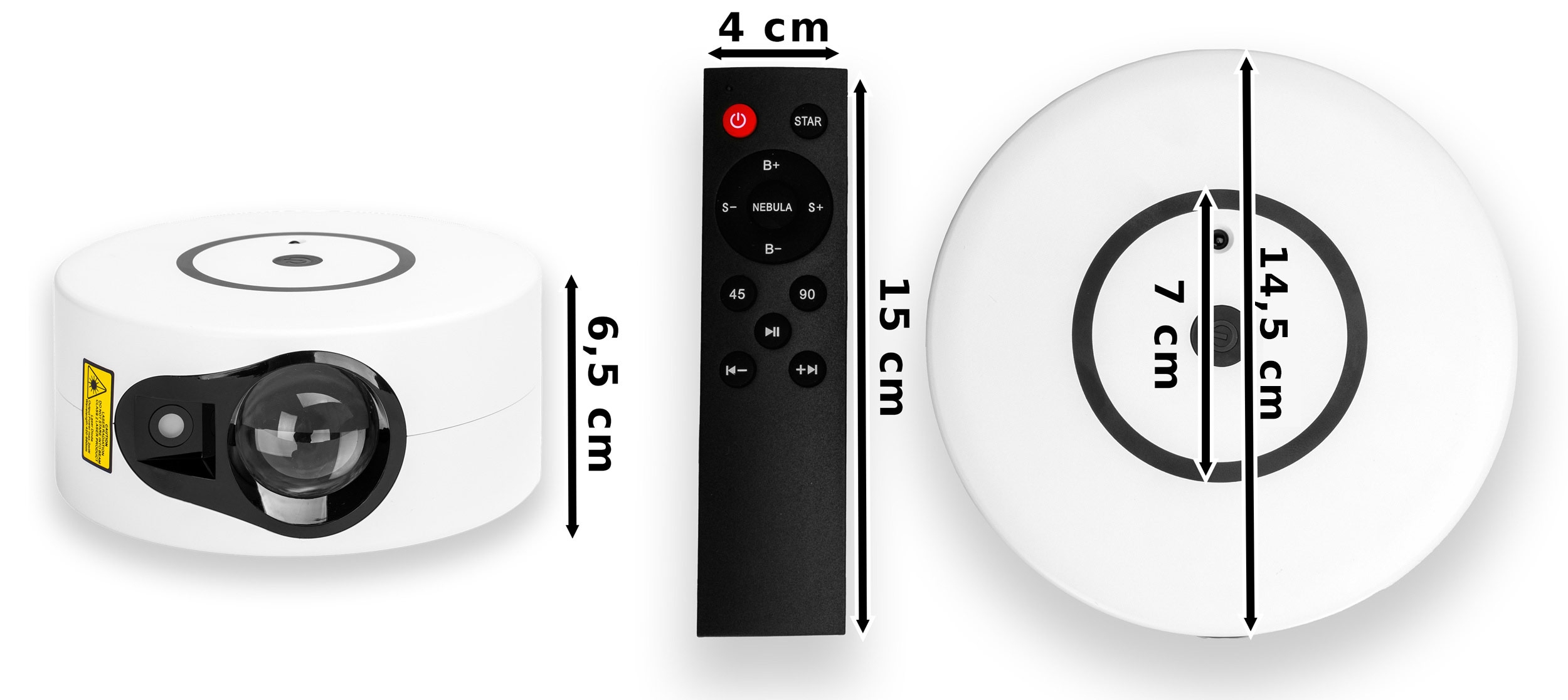 Kolor urządzenia: biały Kolor świecenia: 8 trybów LED mgławicy i zielone, laserowe gwiazdy