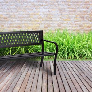 Klasyczny dekor ławki ogrodowej Rombo idealnie wpisze się w piekno Twojego ogrodu. Solidna, stalowa konstrukcja przetrwają długie lata.