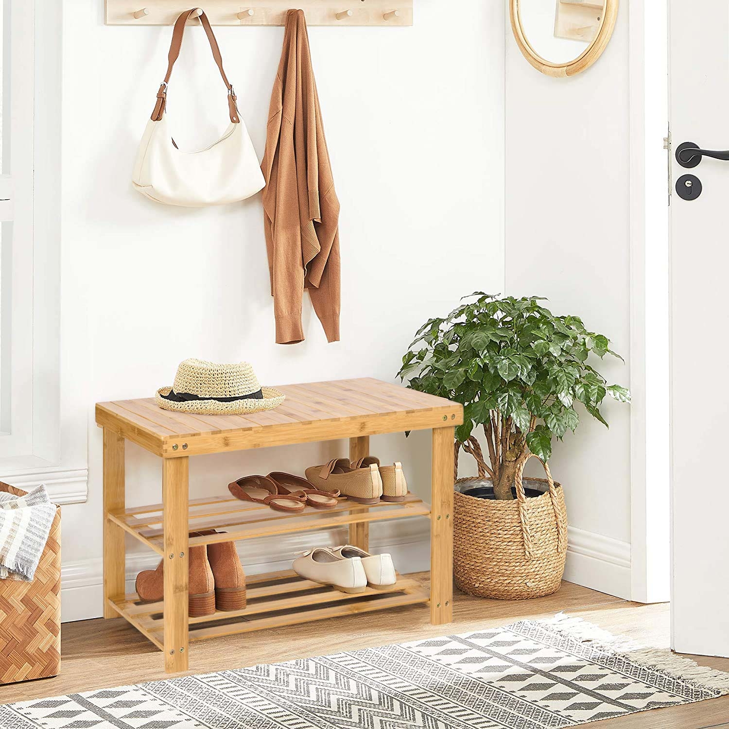 Regał na buty w oryginalnym kolorze bambusa, doskonale pasuje do każdego stylu wyposażenia.