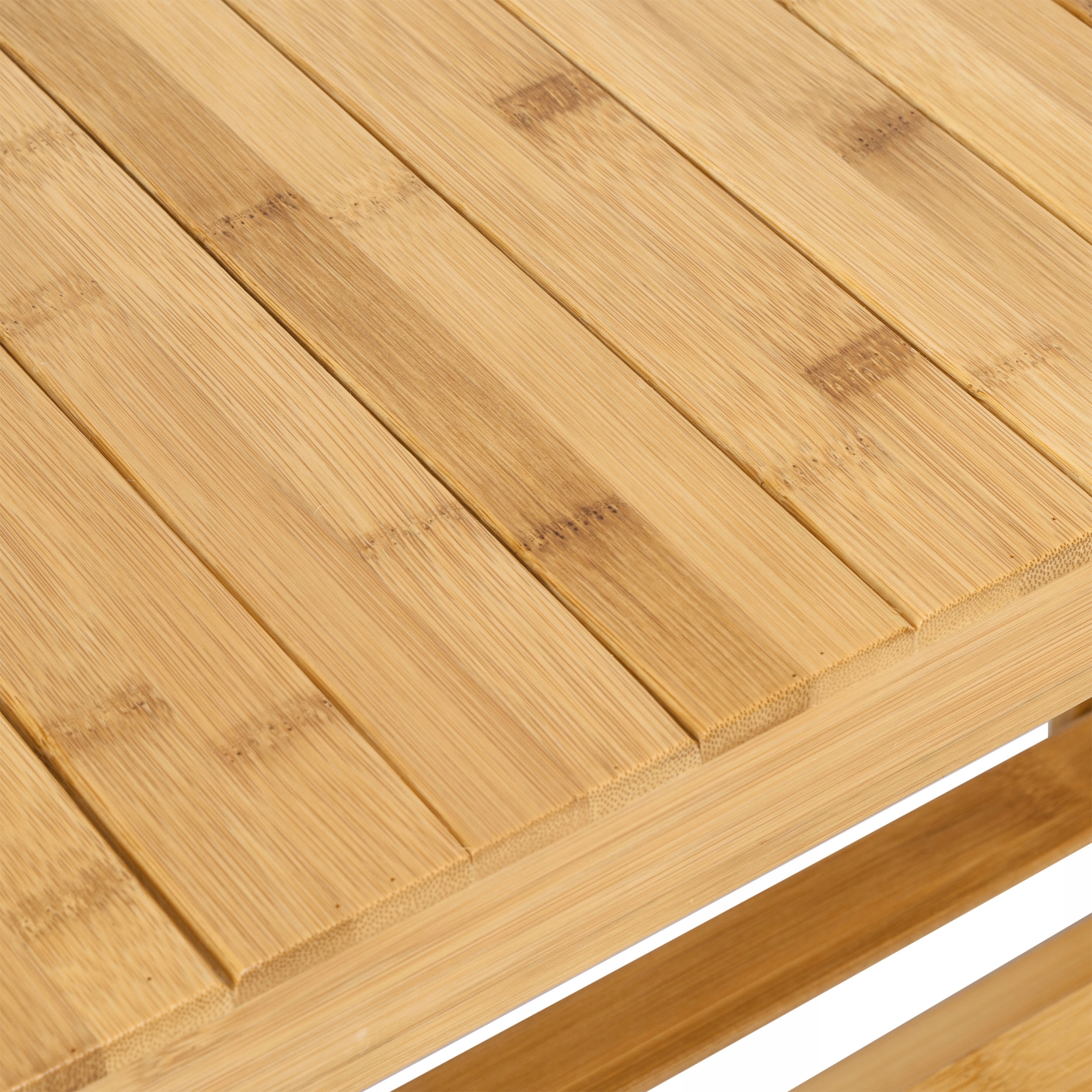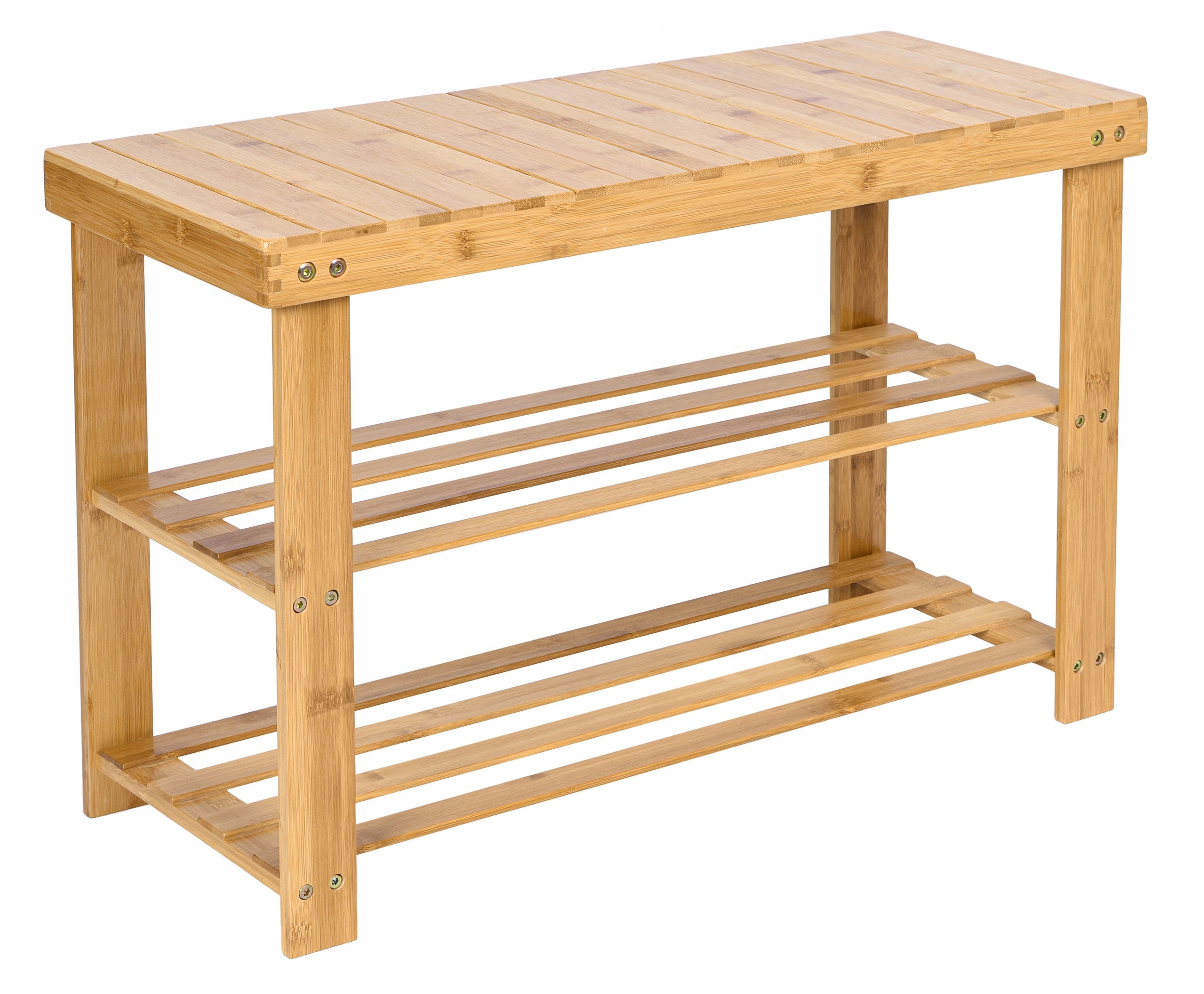 Uniwersalny mebel wykonany z przyjaznego dla środowiska 100% naturalnego bambusa. Posiada dwie półki na buty i wygodne siedzisko. Całość lakierowana, dzięki czemu jest łatwa w czyszczeniu i odporna na działanie wilgoci. Ławka starannie wykonana, gładka z zaokrąglonymi krawędziami. Praktyczny regał na buty z siedziskiem znajdzie swoje zastosowanie w wielu pomieszczeniach. Mebel sprawdzi się w przedpokoju, korytarzu, sypialni, kuchni czy łazience.