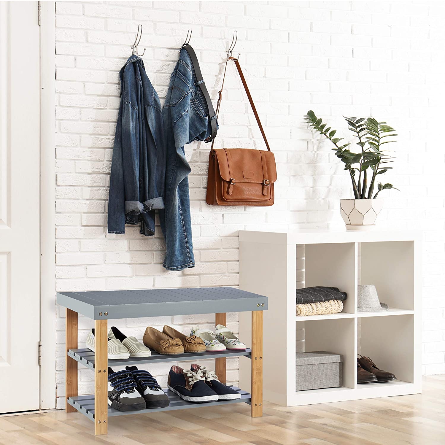 Dwa poziomy z odpowiednim odstępem zapewniają miejsce na maksymalnie 6 par butów, regał na buty może być używany również jako ławka, można też na nim stawiać rośliny, torby lub akcesoria łazienkowe.