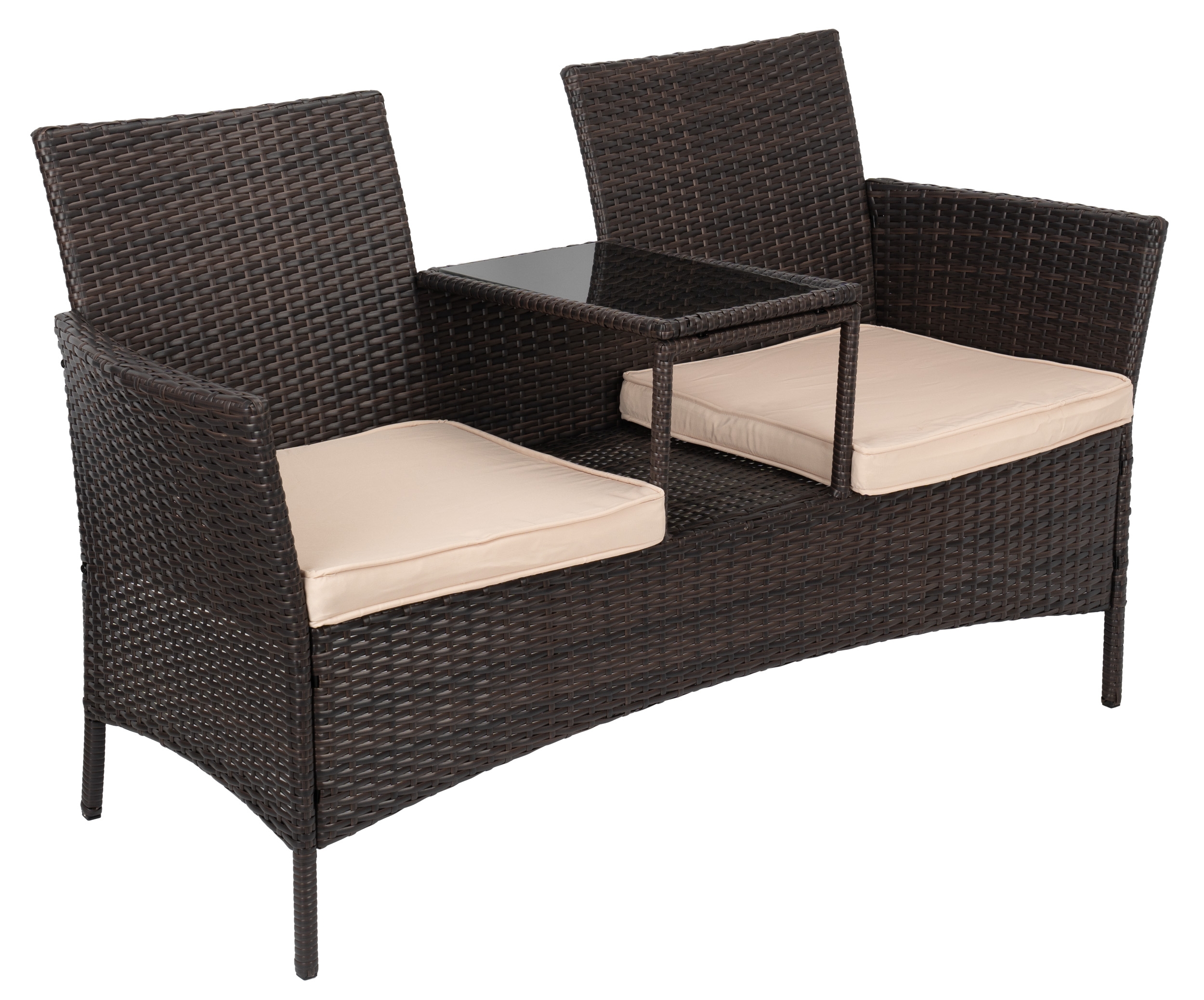 Sofa z technorattanu Cordoba to harmonijne połączenie elegancji i funkcjonalności. Doskonale sprawdzi się w ogrodzie, na tarasie czy balkonie. Dwie miękkie poduszki pokryte warstwą hydrofobową zapewniają komfort i chronią przed wilgocią. Stylowy stolik wykonany ze szkła hartowanego między siedziskami dodaje praktyczności i uroku, podkreślając wyjątkowy charakter Twojego ogrodowego zakątka. Sofa została wykonana z wytrzymałych materiałów, gwarantujących wieloletnią wygodę i relaks na świeżym powietrzu.